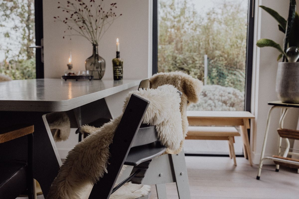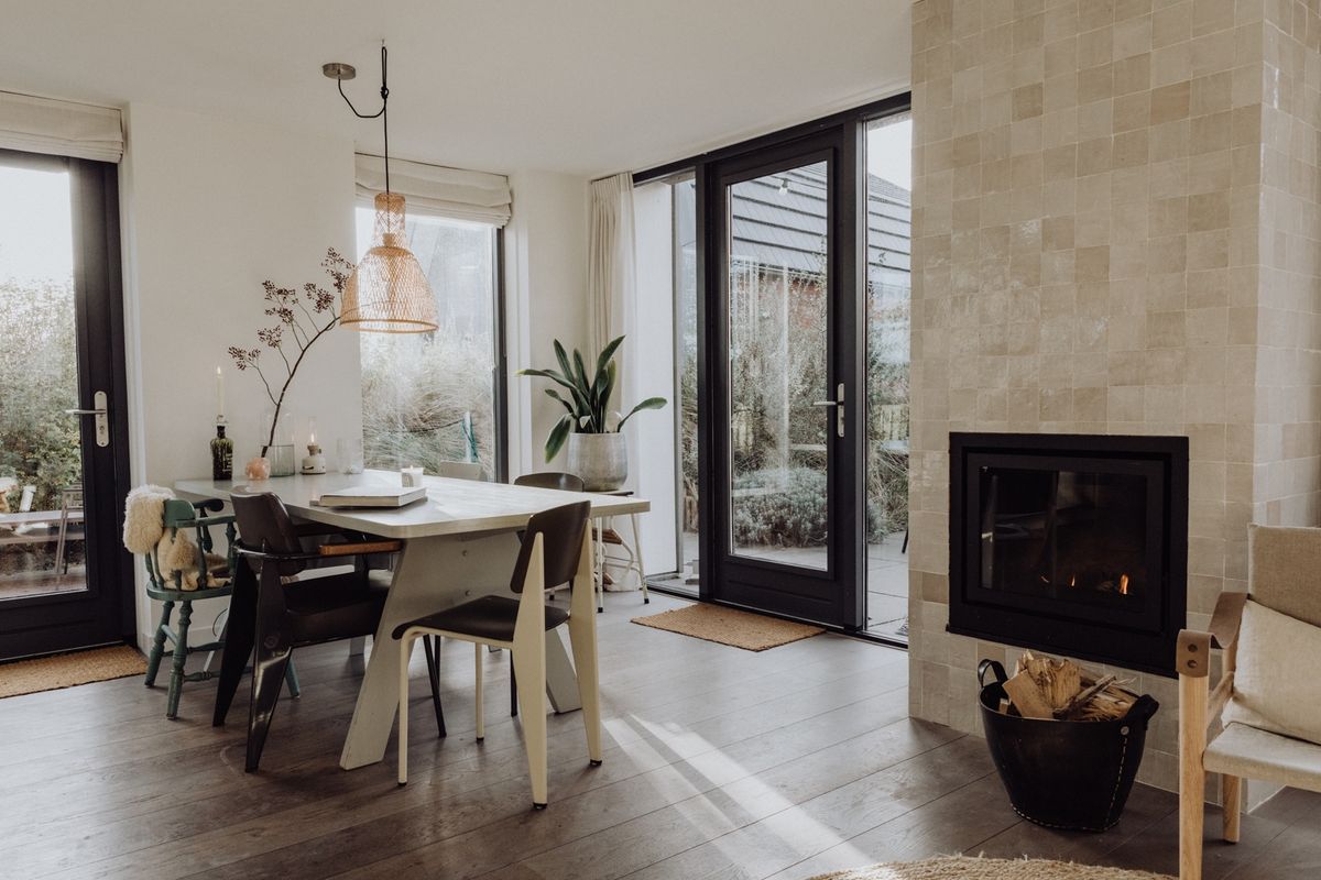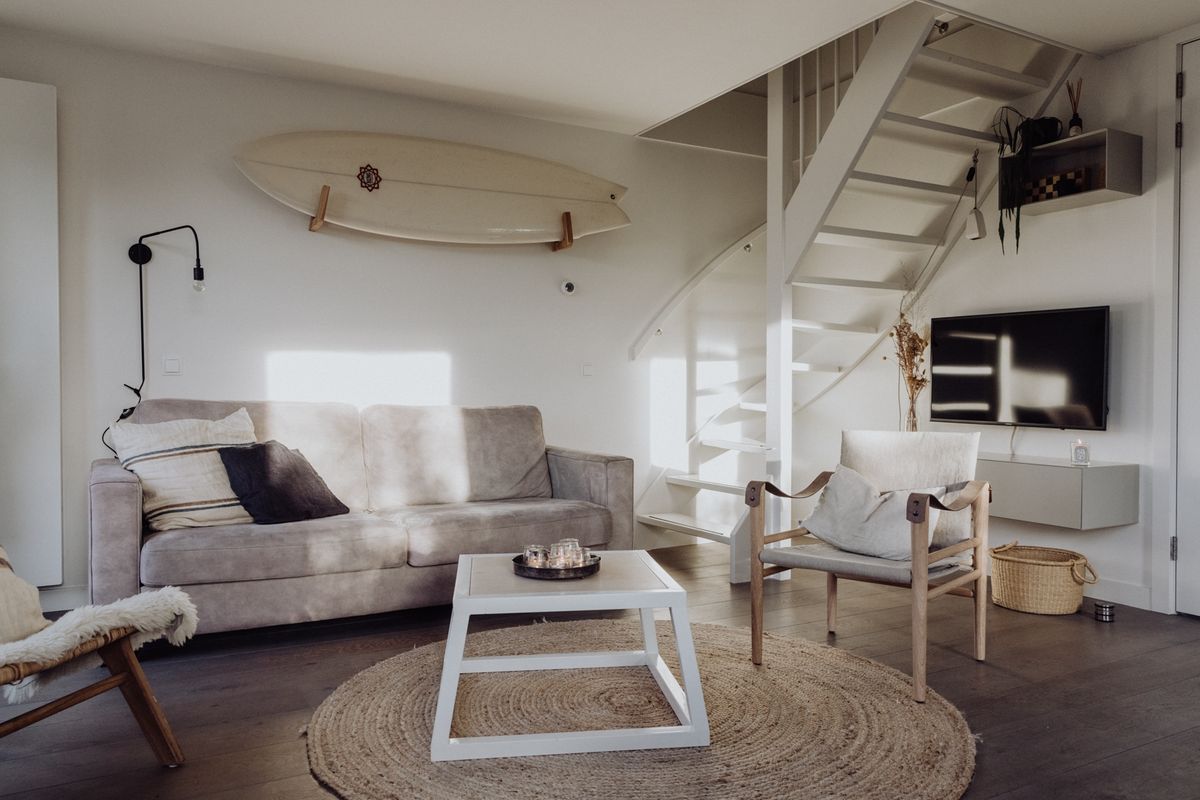 Deze vakantiewoning wordt inclusief de stijlvolle inboedel verkocht. De woonkamer is voorzien van een driezitsbank, twee grote fauteuils en een televisie met Dvd-speler en Google Chromecast. Voor muziek is er een draagbare speaker beschikbaar die je eenvoudig met je eigen apparaat kunt verbinden. In het eetgedeelte staat een grote eettafel van Piet Hein Eek, met plaats voor maximaal zes personen.