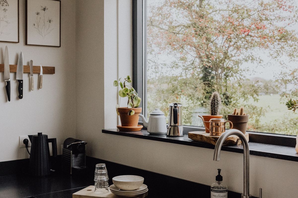 Grenzend aan de woonkamer vind je de volledig uitgeruste keuken met een Nespresso- en filterkoffiezetapparaat, waterkoker, combimagnetron, vaatwasser, grote koelkast met vriezer en alle keukenbenodigdheden.