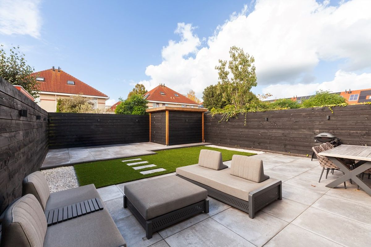 De woning beschikt over een onderhoudsvrije voor- en achtertuin (aangelegd in 2021). De achtertuin is fraai bestraat met keramische tegels, heeft een stuk kunstgras voor een groene uitstraling en beschikt over een praktisch tuinhuis. Daarnaast is de tuin voorzien van automatische verlichting en een elektrisch zonnescherm.
