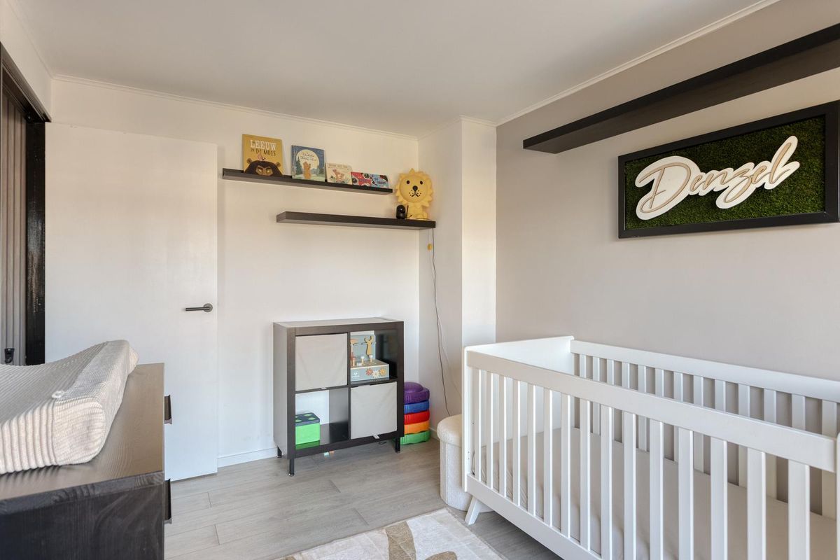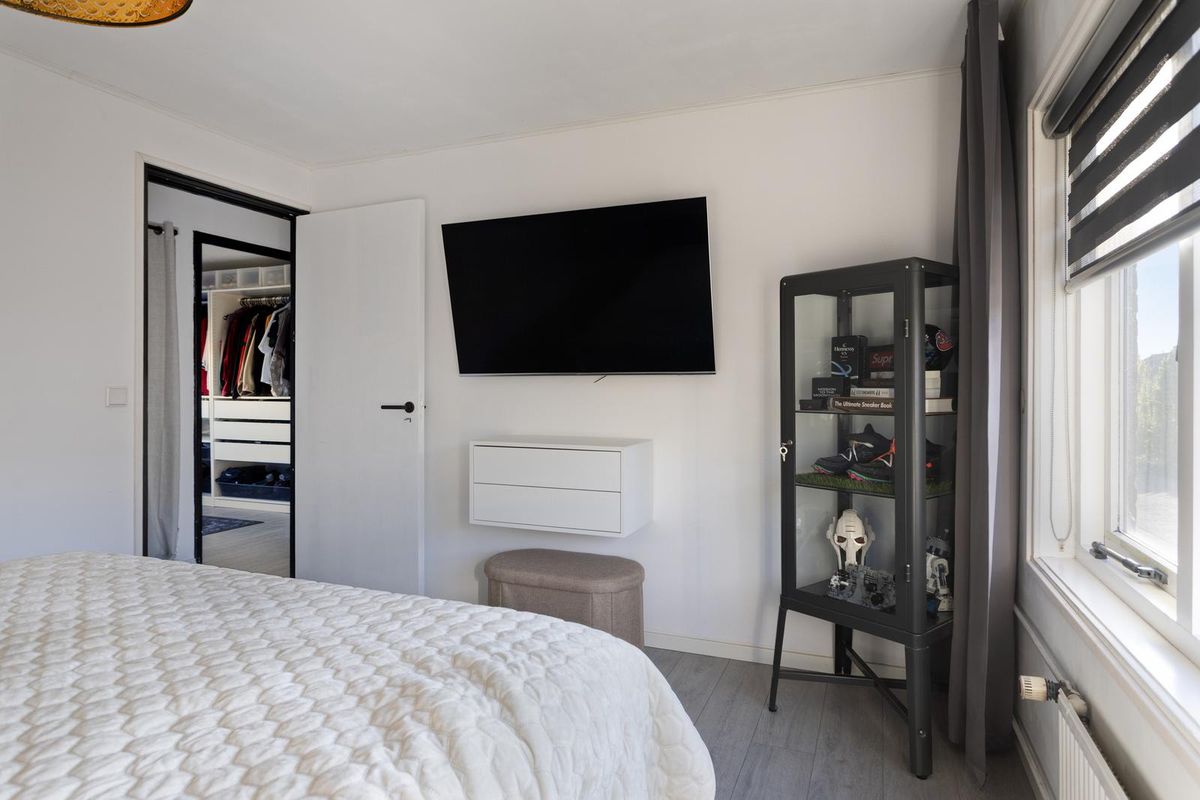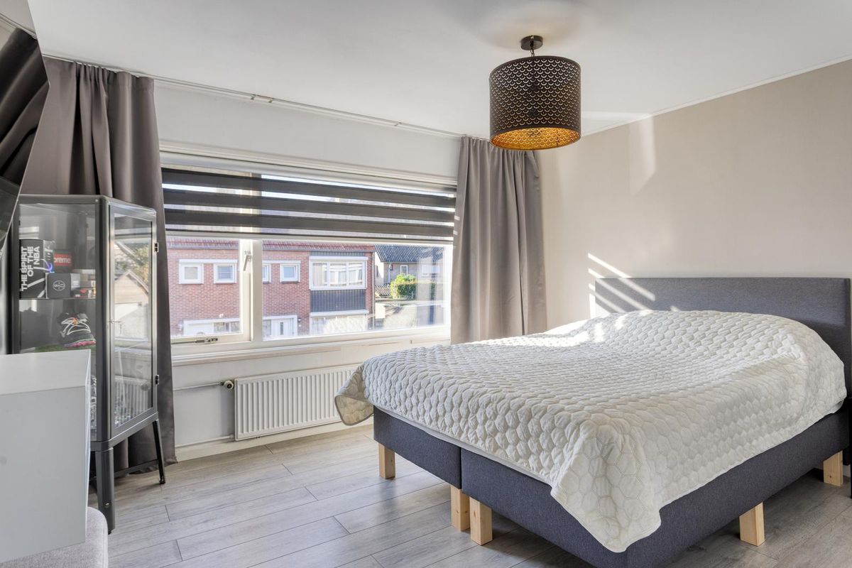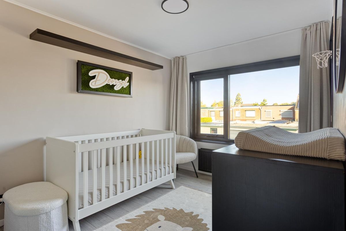 Op de eerste verdieping vind je drie slaapkamers, waarvan twee zijn voorzien van een praktische vaste kast. De badkamer is in 2022 volledig vernieuwd en beschikt over een douche, wastafel en toilet, waardoor het een frisse en moderne ruimte is voor het hele gezin. De overloop biedt daarnaast extra bewegingsruimte en lichtinval, waardoor de verdieping prettig en ruim aanvoelt.