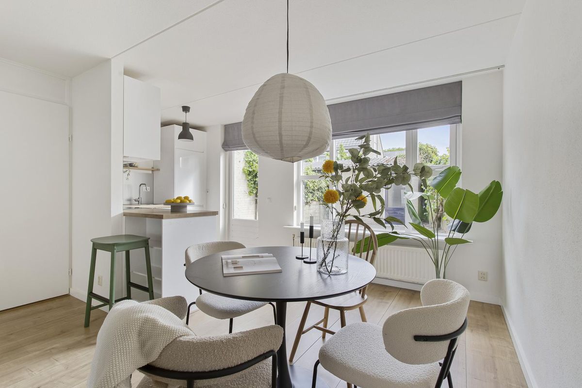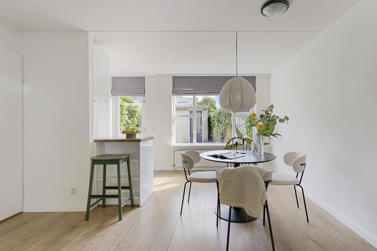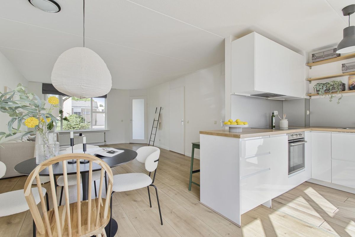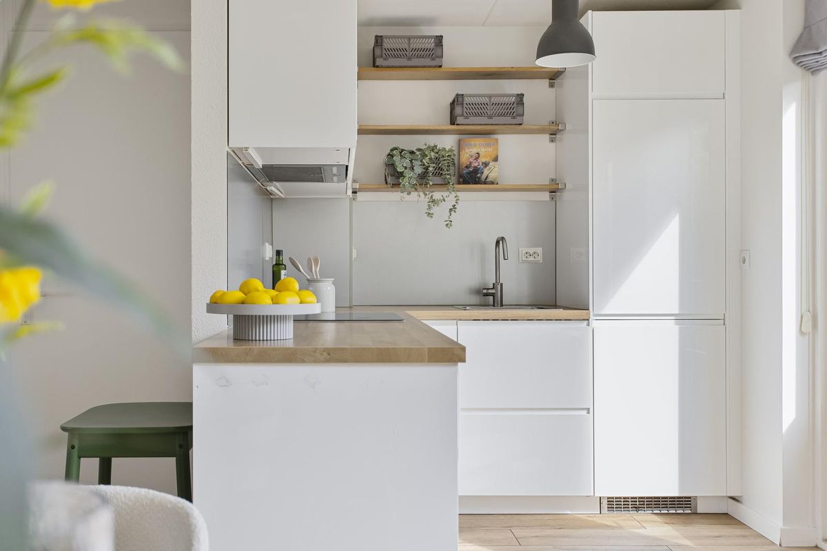 De half open keuken is onlangs volledig vernieuwd (2022) en voorzien van een L-vormige keukenopstelling met inductiekookplaat, afzuigkap, oven, vaatwasser, koelkast, vriezer, diverse kasten, waaronder een carrouselkast en pannen- en bestekladen.
