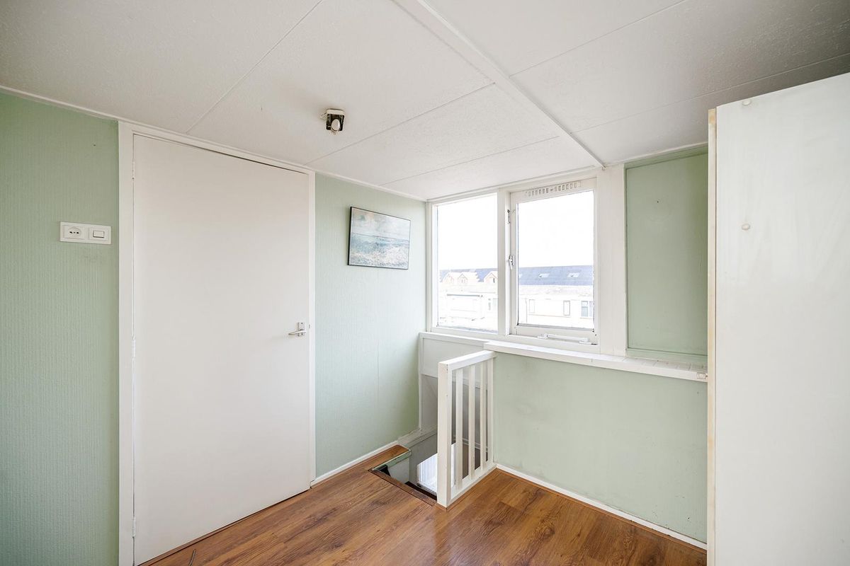 Op de bovenste woonlaag kom je op een overloop met toegang tot een ruime slaapkamer, voorzien van twee dakkapellen die zorgen voor extra ruimte en licht. Daarnaast is er voldoende plek voor kasten of een werkhoek.