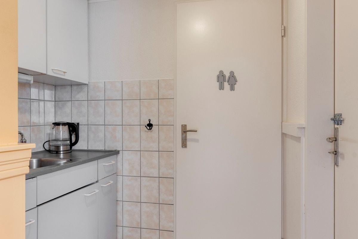 De tweede entree met meterkast geeft toegang tot de werkruimte. Riante werkruimte met schuifpui naar buitenplaats met achterom. Vanuit deze ruimte zijn 2 kamers bereikbaar. 1 kamer is voorzien van een ruime schuifdeurkast, wastafelmeubel en een kleine vaste kast. De tweede kamer is voorzien van een vaste trapkast. De pantry geeft toegang tot het toilet met fontein en de ruime berging met opstelplaats voor wasmachine. Vanuit de berging heeft u toegang tot de stookruimte met opstelplaats voor HR-combiketel (Remeha 2021). Vanuit de berging is ook de buitenplaats bereikbaar.