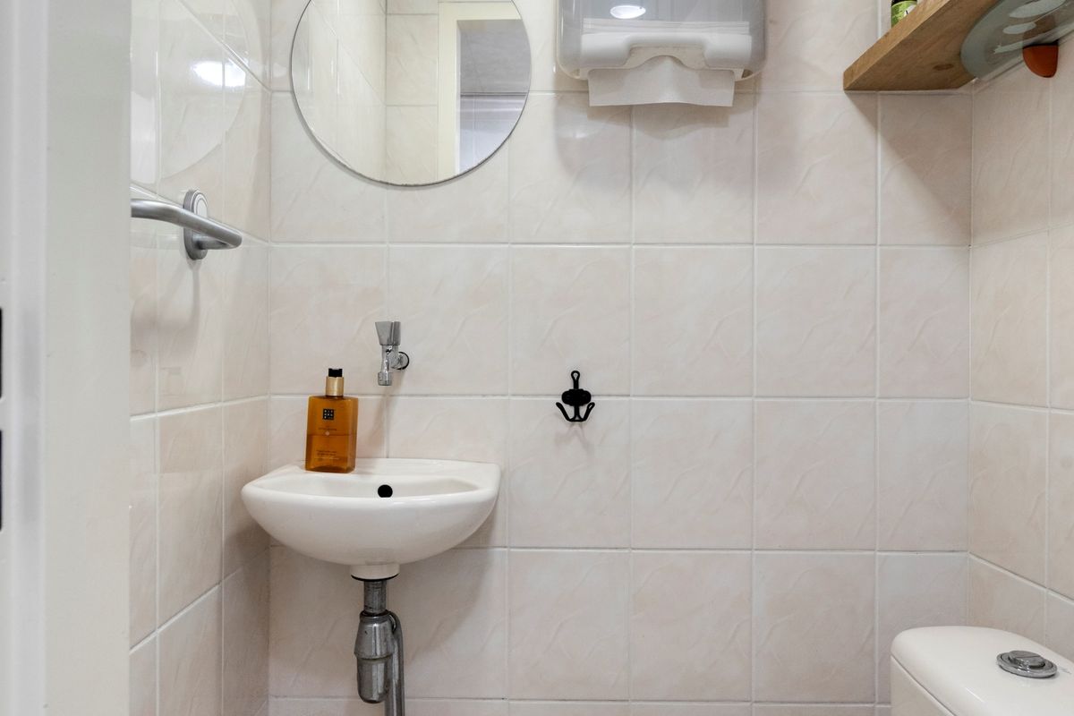 Aan de achterzijde van deze verdieping bereikt u via een tussenhal met vaste kast de badkamer, separaat toilet met fontein en de ruime slaapkamer aan de achterzijde van het pand. De badkamer is voorzien van zit-ligbad (whirlpool), wastafelmeubel en designradiator. Separaat toilet met fonteintje.