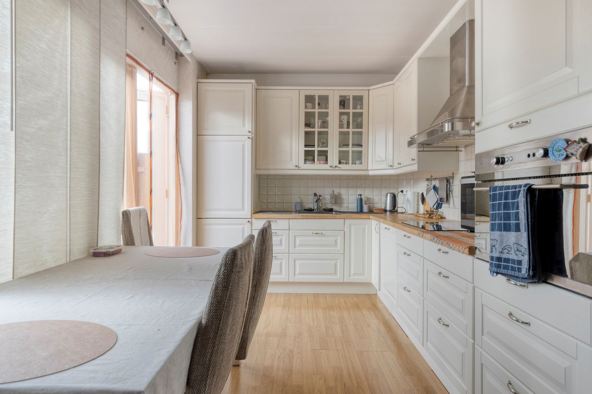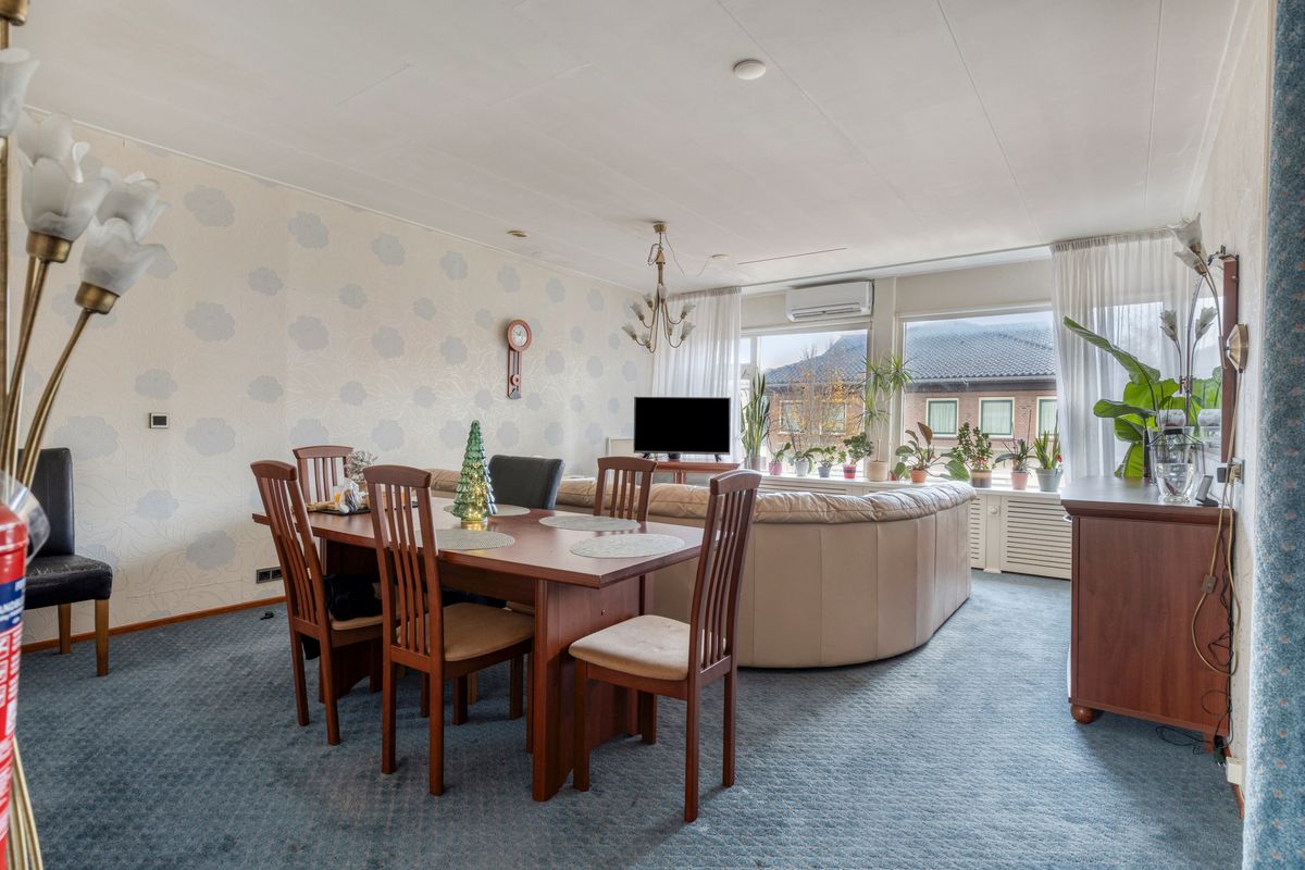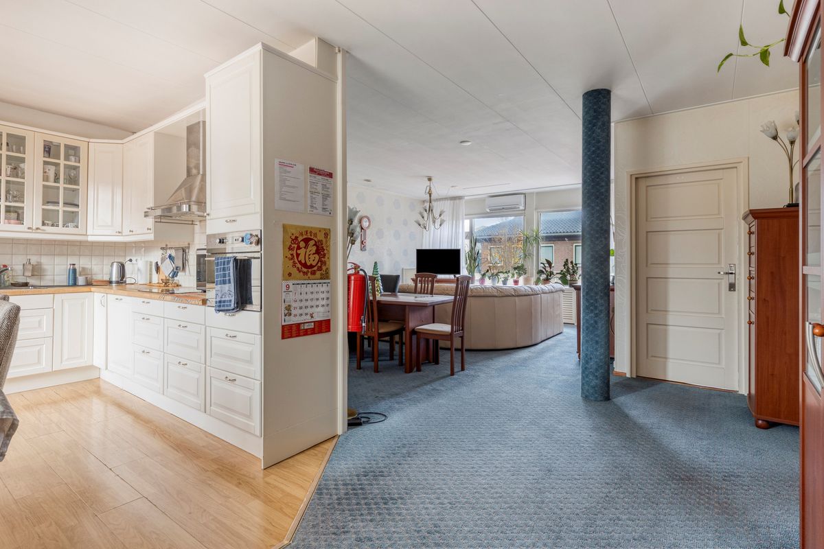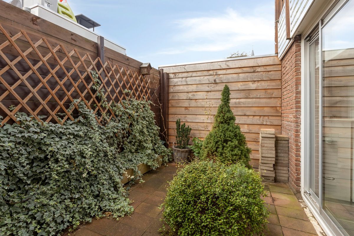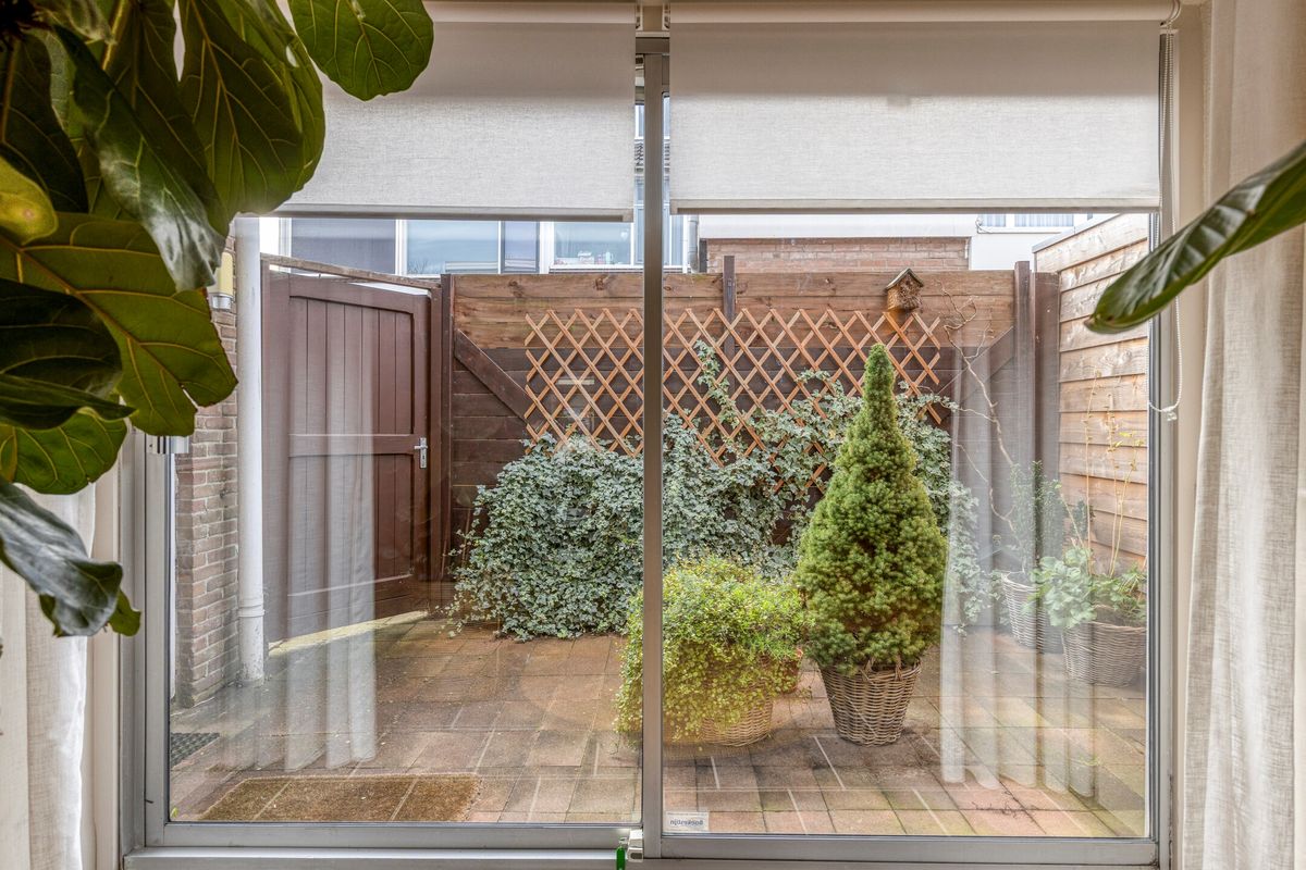 Vanuit de woonkamer is het ruime terras bereikbaar met een kleine vaste kast.