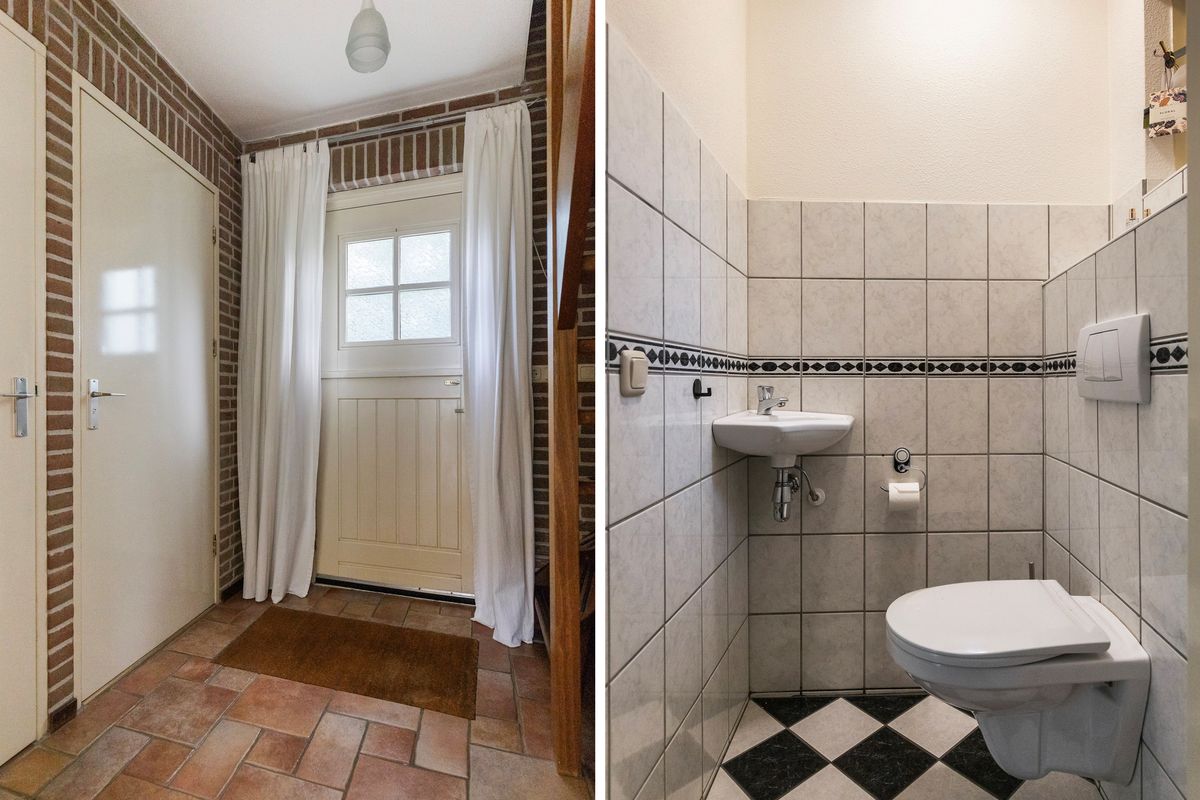 Entree met hal, meterkast en toiletruimte. Vanuit de hal stap je de ruime, lichte woonkamer binnen met openslaande deuren naar het terras.