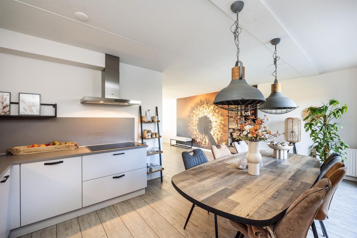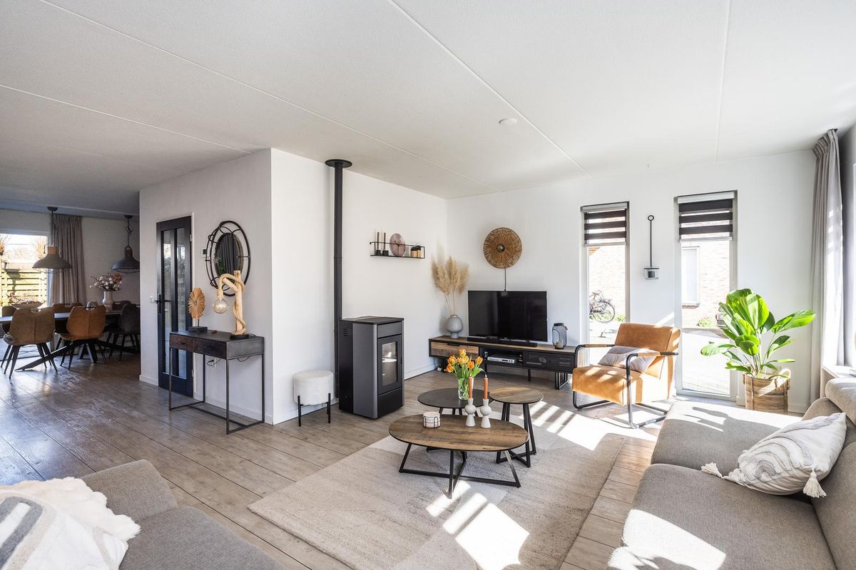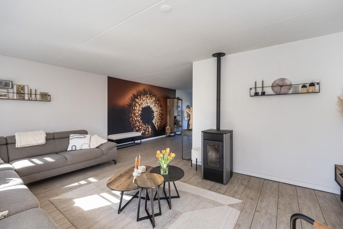 Dankzij de grote raampartijen en de gezellige palletkachel voelt de royale woonkamer licht, warm en uitnodigend aan. Er is volop ruimte voor een comfortabele zithoek én een grote eettafel, ideaal voor gezellige momenten met familie en vrienden.