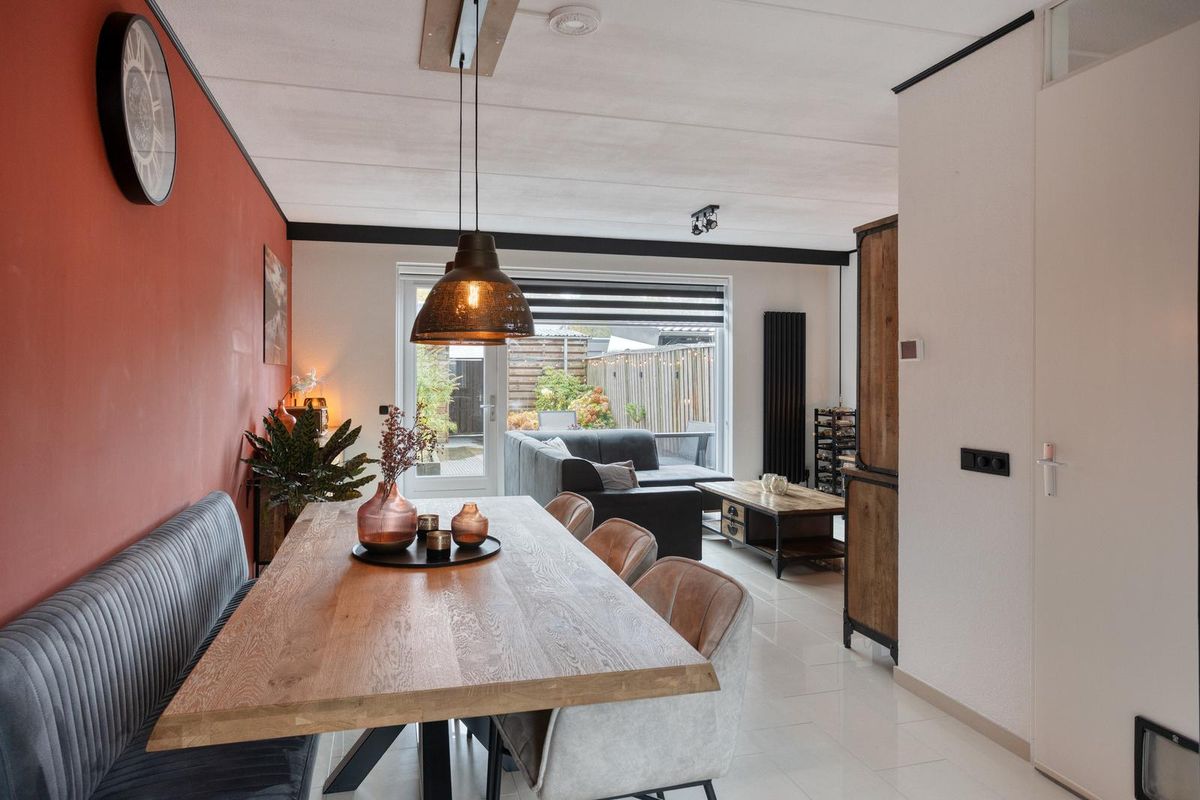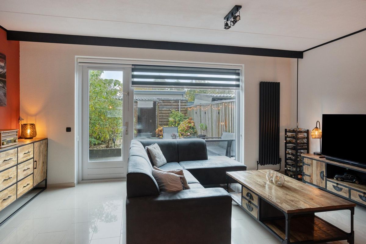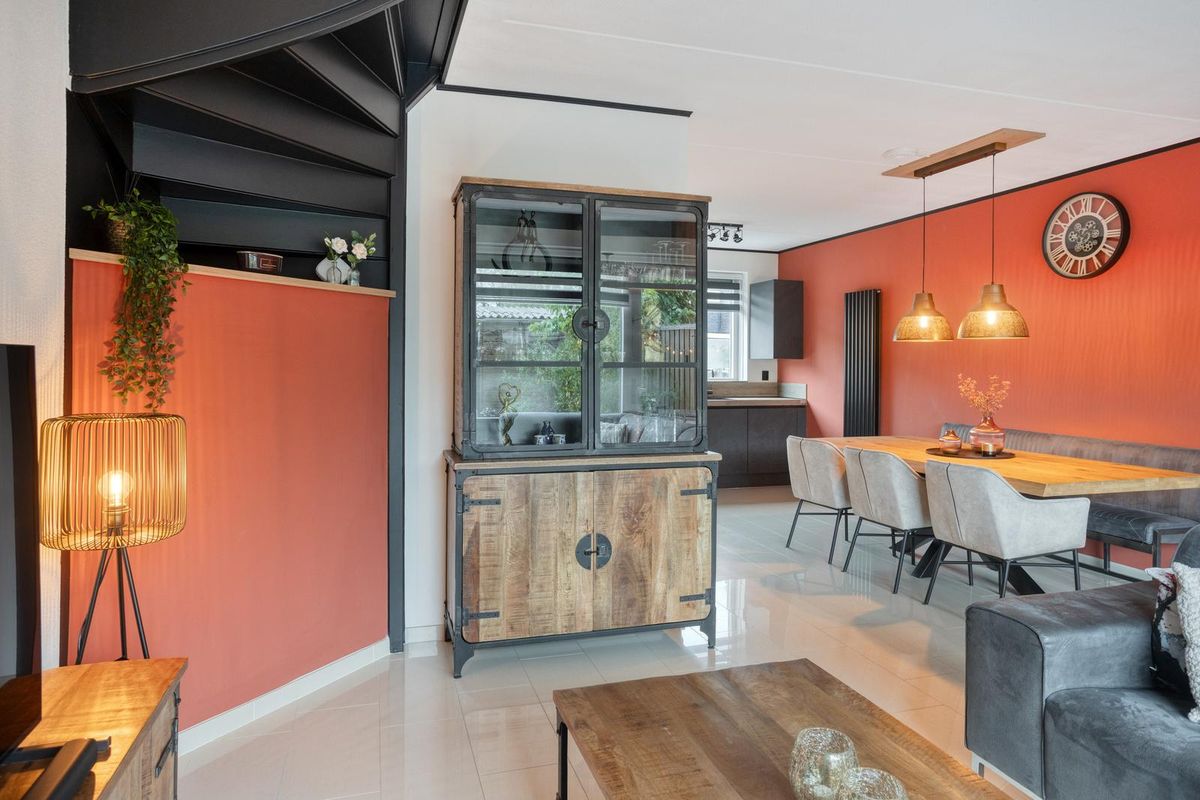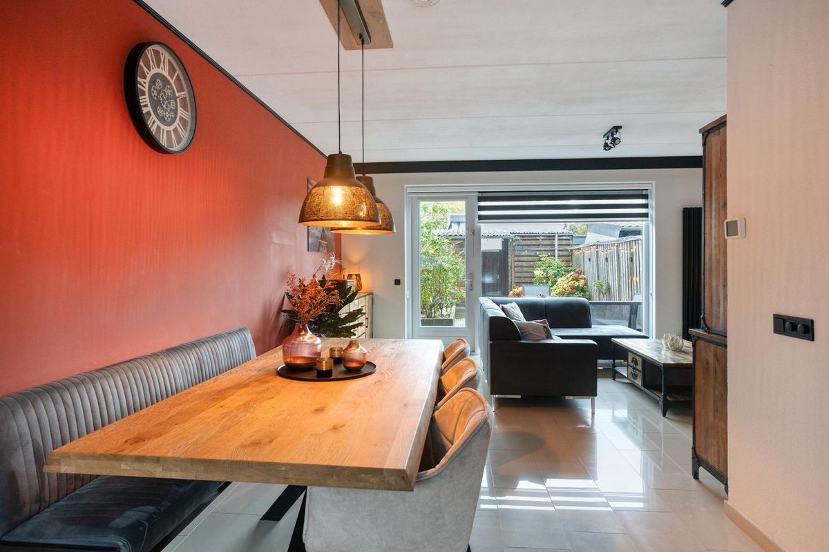 De ruime, tuingerichte woonkamer is lekker licht en voorzien van een plavuizen vloer met vloerverwarming. De moderne open keuken in L-opstelling is uitgerust met alle inbouwapparatuur die je nodig hebt: inductiekookplaat, afzuigkap, vaatwasser, combi-oven/magnetron, koel-vriescombinatie en een warmwaterkraan met elektrische boiler. Vanuit de woonkamer loop je zo de zonnige achtertuin op het zuidoosten in, met een houten berging, (fietsen)overkapping en een achterom richting het afsluitbare parkeerterrein met je eigen parkeerplaats.