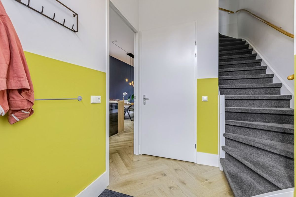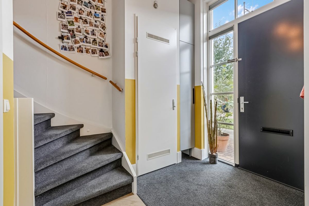Via de hal kom je de woning binnen. Hier bevindt zich de trapopgang, meterkast en het toilet. In de woonkamer valt direct het stoere karakter op. Het hoge plafond, de hoge plinten en de royale raampartijen zorgen voor een bijzonder ruimtelijk gevoel. De wanden zijn strak afgewerkt en professioneel ingekleurd. De vloer is voorzien van PVC, in visgraat gelegd en vloerverwarming.