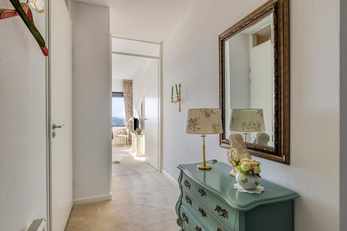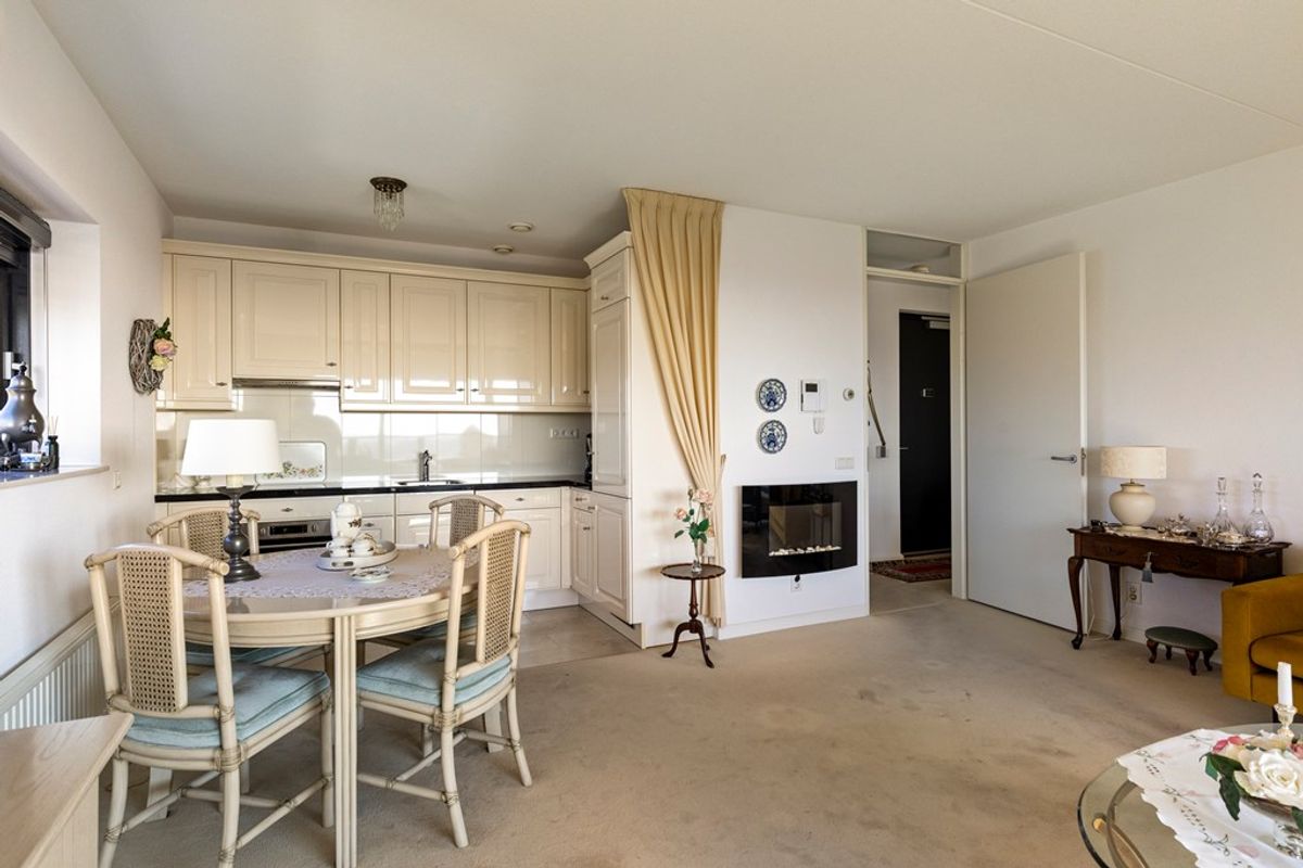 Binnen treft u een appartement dat netjes is afgewerkt is. De woonkamer heeft een royale maatvoering en staat in open verbinding met de keuken, waardoor een ruimtelijk geheel ontstaat. Vanuit de woonkamer is er toegang tot het overdekte balkon, waar u beschut kunt zitten en tegelijkertijd geniet van een weids uitzicht over de omgeving.