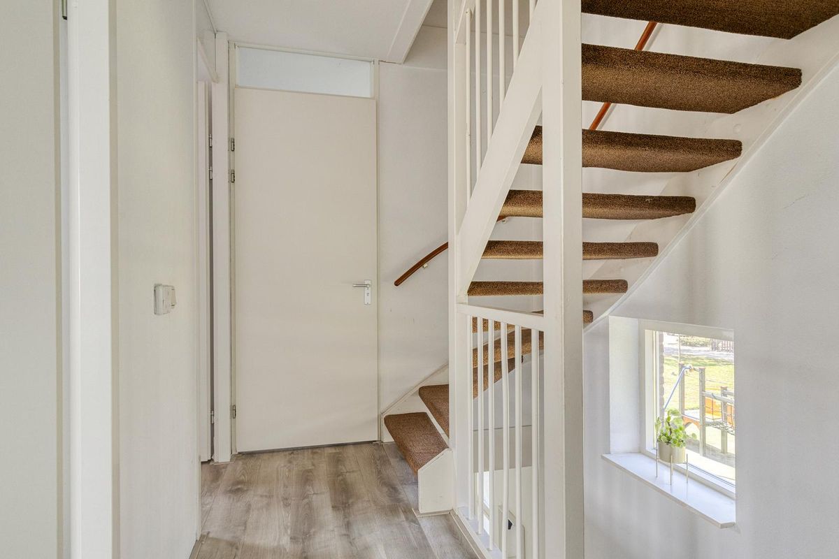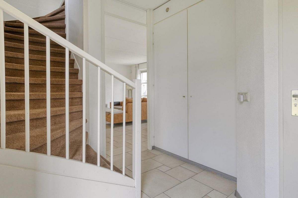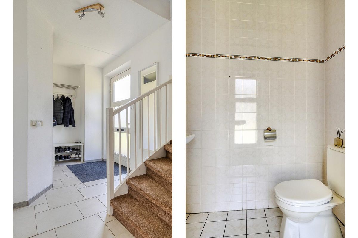 Entree met meterkast (glasvezel), volledig betegeld toilet met fontein, garderoberuimte en trapopgang.