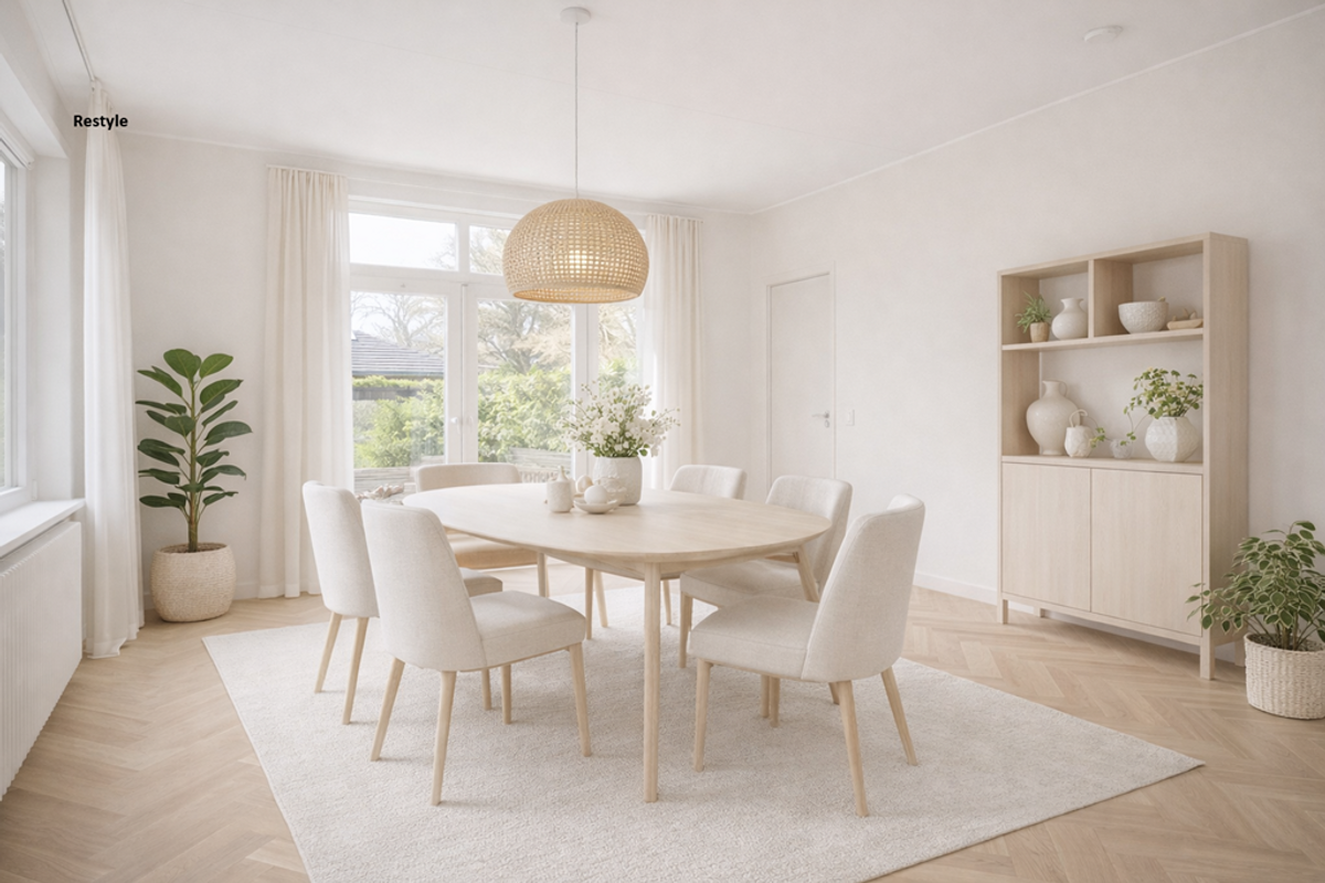 De woonkamer vormt het warme hart van de woning en biedt u een open en uitnodigende leefruimte. Dankzij de royale opzet kunt u hier moeiteloos een comfortabele zithoek en een gezellige eethoek creëren. De grote raampartijen zorgen voor een overvloed aan natuurlijk licht, wat de ruimte een frisse en aangename sfeer geeft. Vanuit de woonkamer heeft u bovendien direct toegang tot de tuin, waardoor binnen en buiten op een natuurlijke manier in elkaar overlopen.