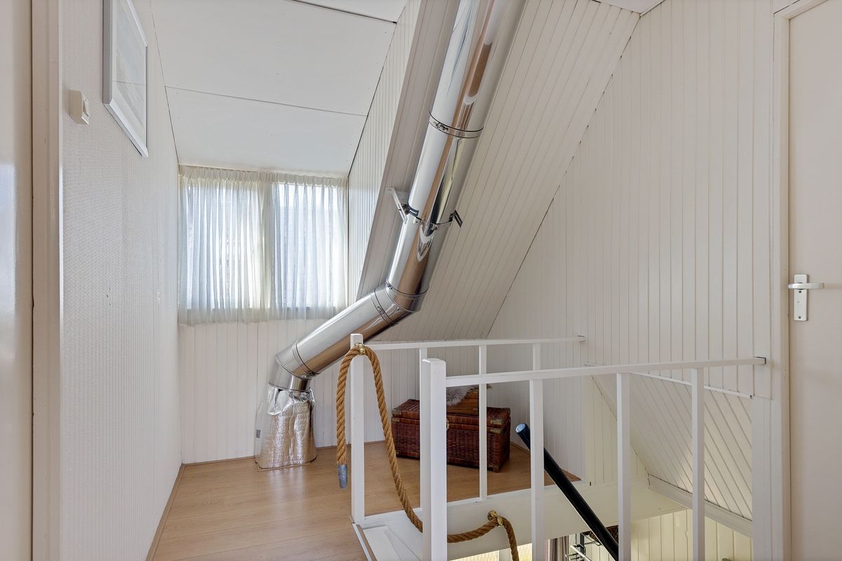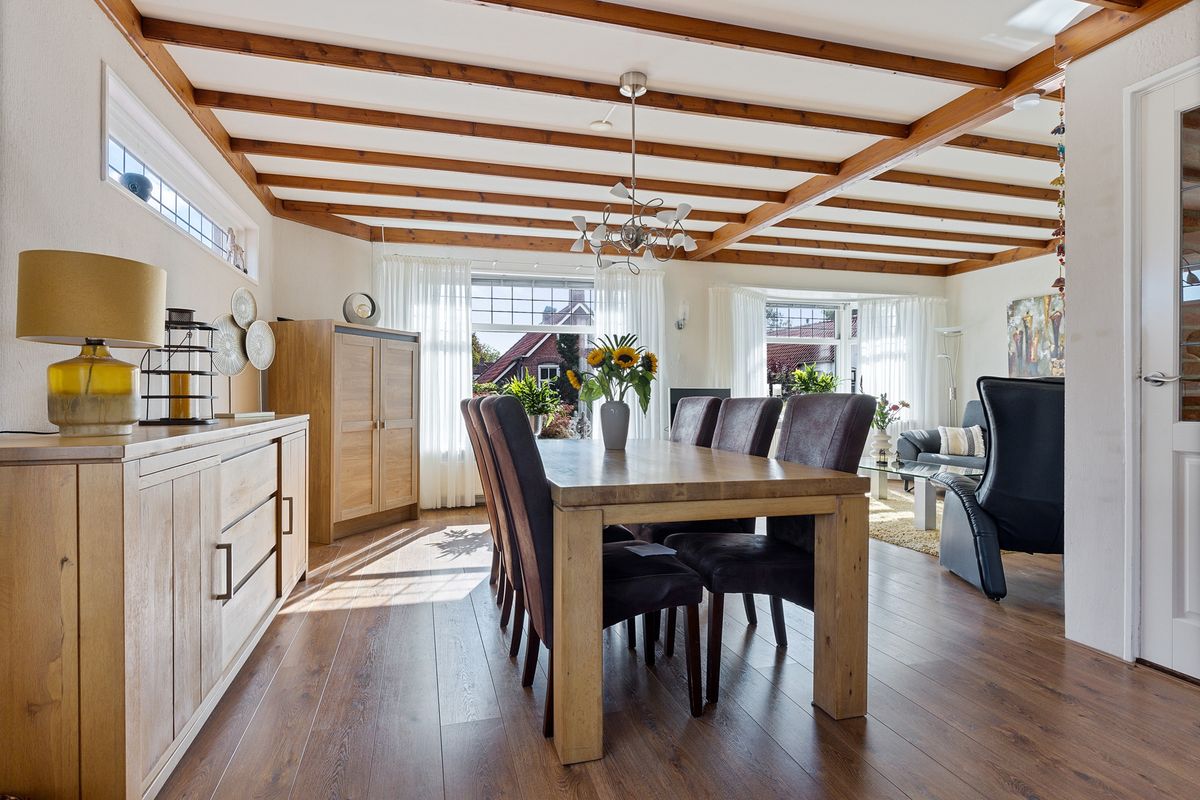Entree, hal, ruime woonkamer van 37 m2 met een open keuken van 10m2. Via de keuken naar de bijkeuken en badkamer. Via de bijkeuken naar de besloten tuin met berging en garage. De berging is ingericht als kantoor.