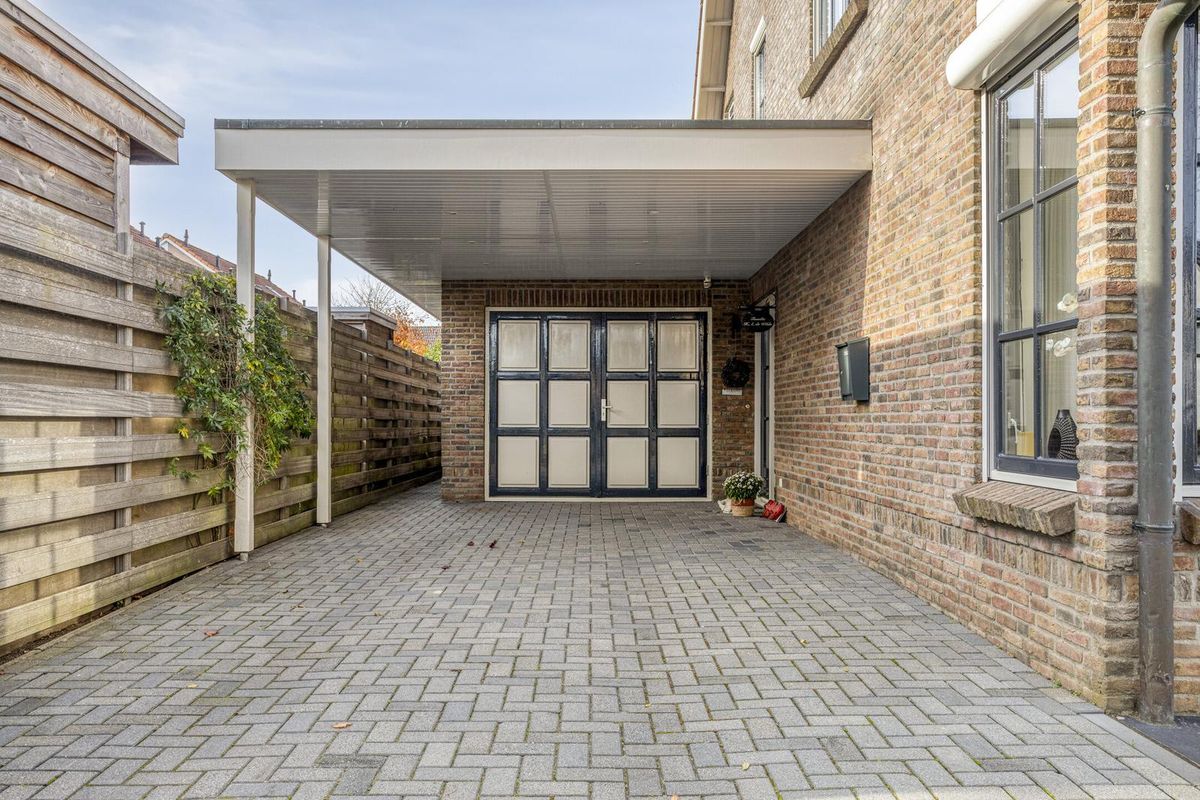 De tuin sluit naadloos aan bij het comfort van de binnenzijde van de woning. Onder de gezellige overkapping geniet je beschut van lange avonden buiten, met voldoende plek voor een grote eettafel en sfeerverlichting. Achter in de tuin bevindt zich een tweede overkapping met een fraaie buitenkeuken, compleet met werkblad, wateraansluiting en ruimte voor een barbecue. De tuin is verzorgd aangelegd met ruime terrassen, een strak gazon, volwassen beplanting en meerdere zitplekken, waardoor je op elk moment van de dag kunt kiezen tussen zon en schaduw. De ligging op het westen zorgt bovendien voor optimale middag- en avondzon. Aan de voorzijde vind je een oprit met carport en toegang tot de inpandige garage, die ruimte biedt aan fietsen, gereedschap, opslag en uiteraard een auto.