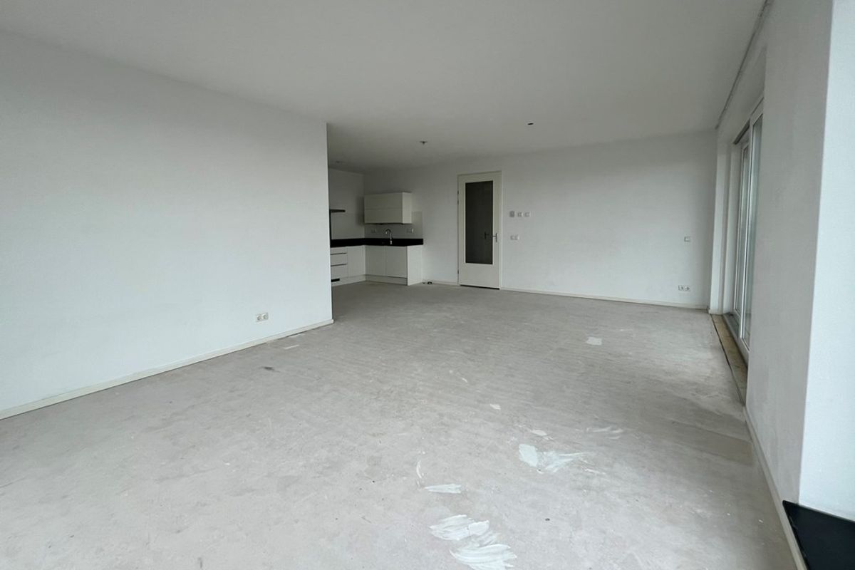 De ruime woonkamer met open keuken biedt toegang tot het balkon.