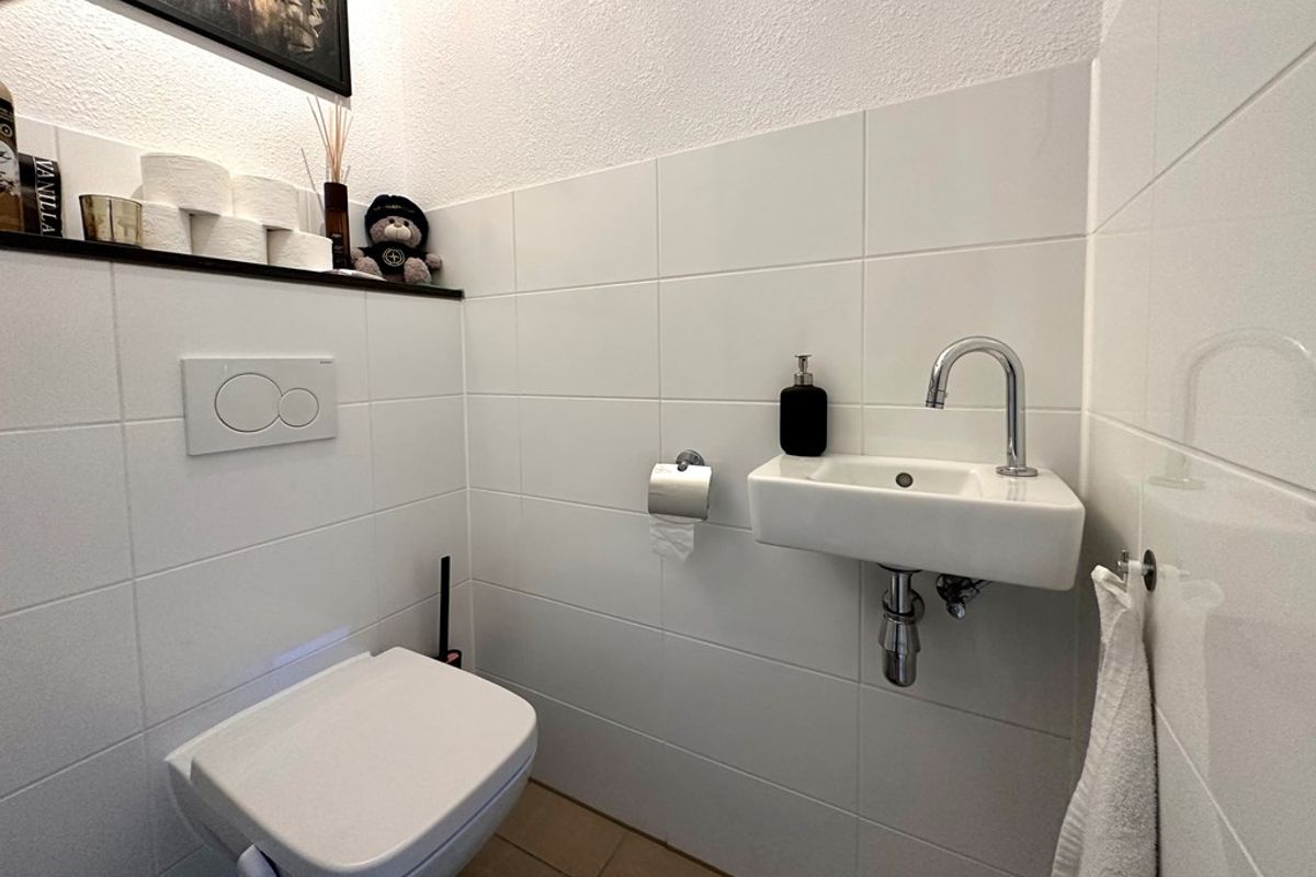 Hal voorzien van een meterkast, een wasruimte en een separaat toilet en fonteintje. Vanuit de hal is er toegang tot alle vertrekken.