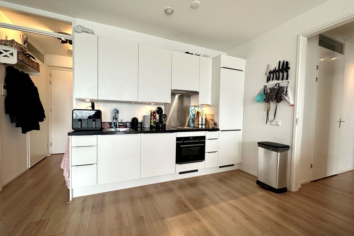 De woonkamer heeft een open keuken welke is voorzien van diverse inbouwapparatuur zoals een vaatwasser, oven / magnetron, inductie kookplaat en koel- vriescombinatie. Vanuit hier is er toegang tot een privé balkon.