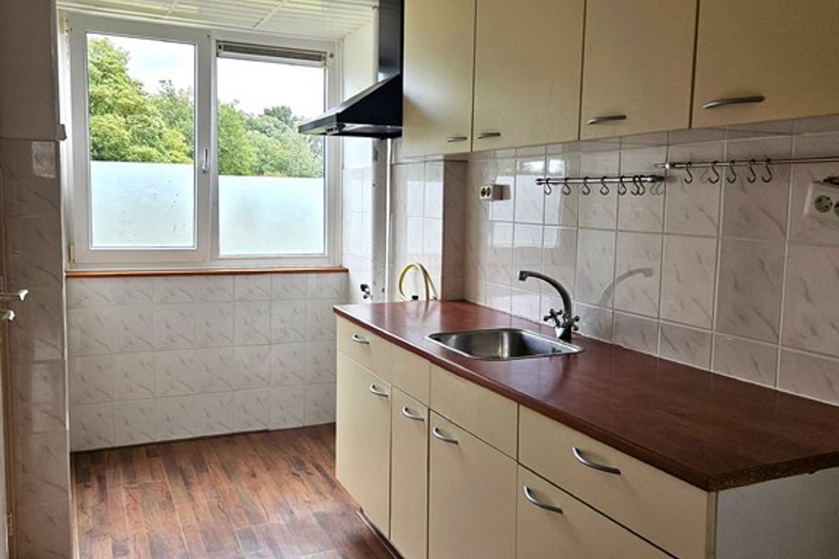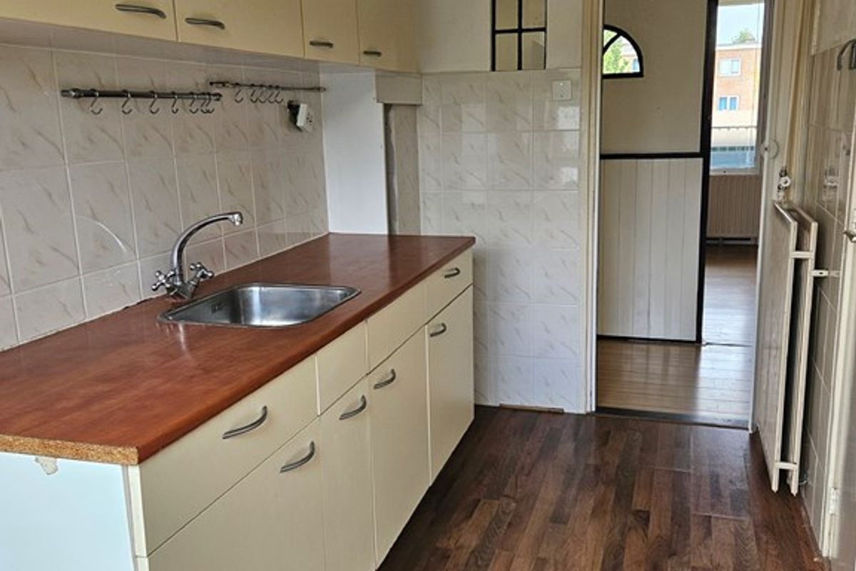 Entree/hal met toilet en meterkast; Woonkamer van ca. 21 m2; Dichte keuken met een eenvoudig keukenblok; 2 slaapkamers van ca. 13 en 11 m2; Badkamer voorzien van een douche en wastafel. Vanuit één van de slaapkamers is het ruime balkon bereikbaar.