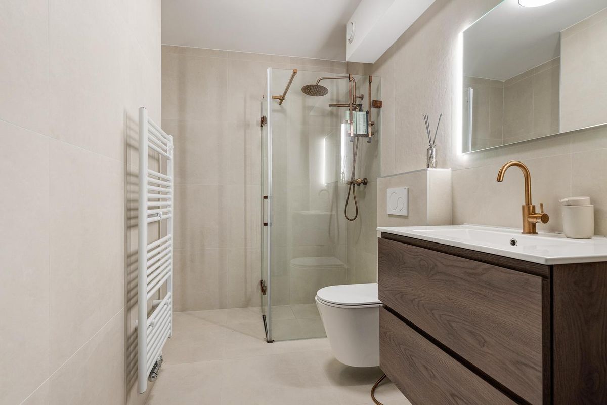 Luxe badkamer met regendouche en hoogwaardige afwerking