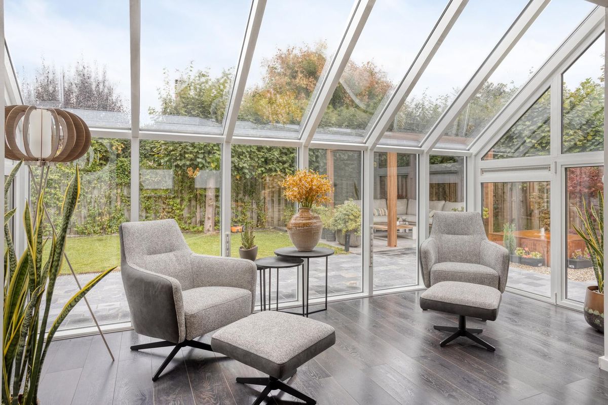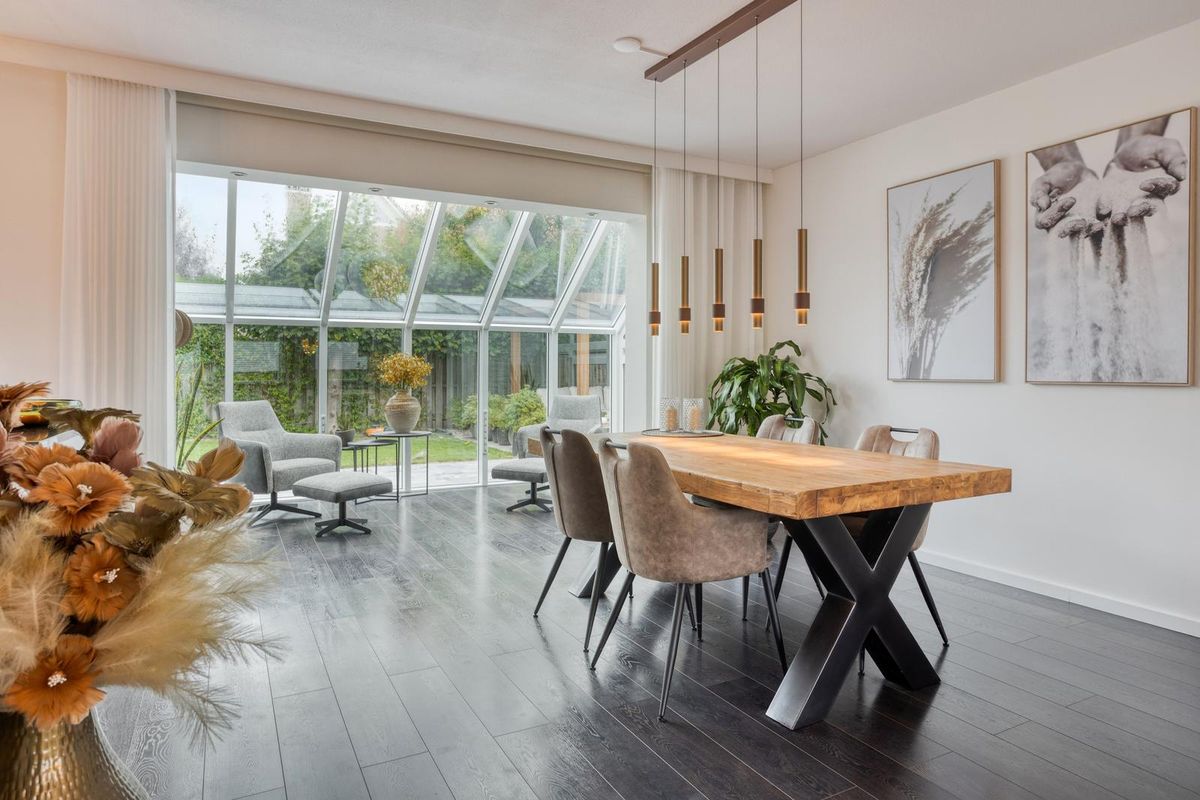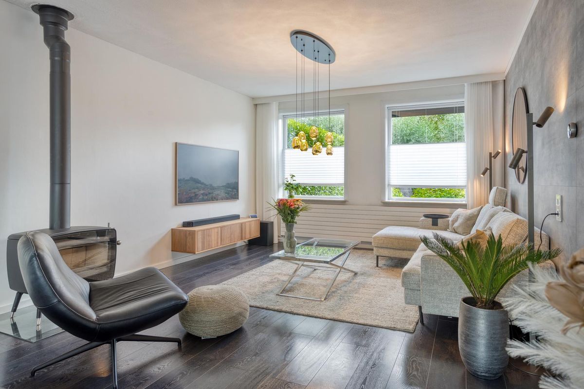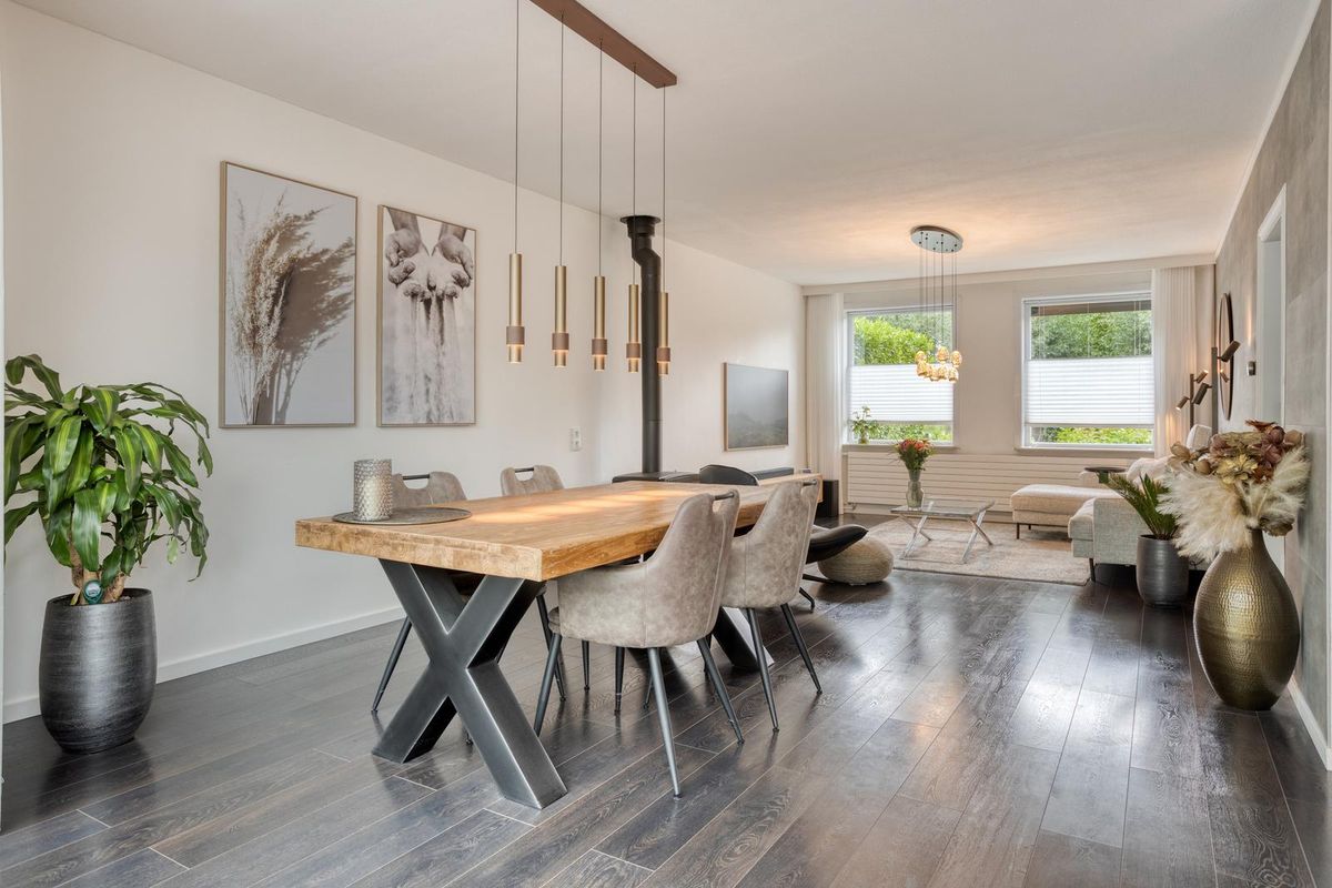 De sfeervolle woonkamer met half open keuken is aan de achterzijde uitgebouwd met een fraaie serre wat voor een heerlijke lichtinval zorgt. De vloer is afgewerkt met een mooi laminaat en is er een gezellige vrijstaande houtkachel. Het is een ideale combinatie van stijl en comfort, waar je heerlijk tot rust komt of kan genieten van de mooie dingen in het leven met je gezin, familie of vrienden.