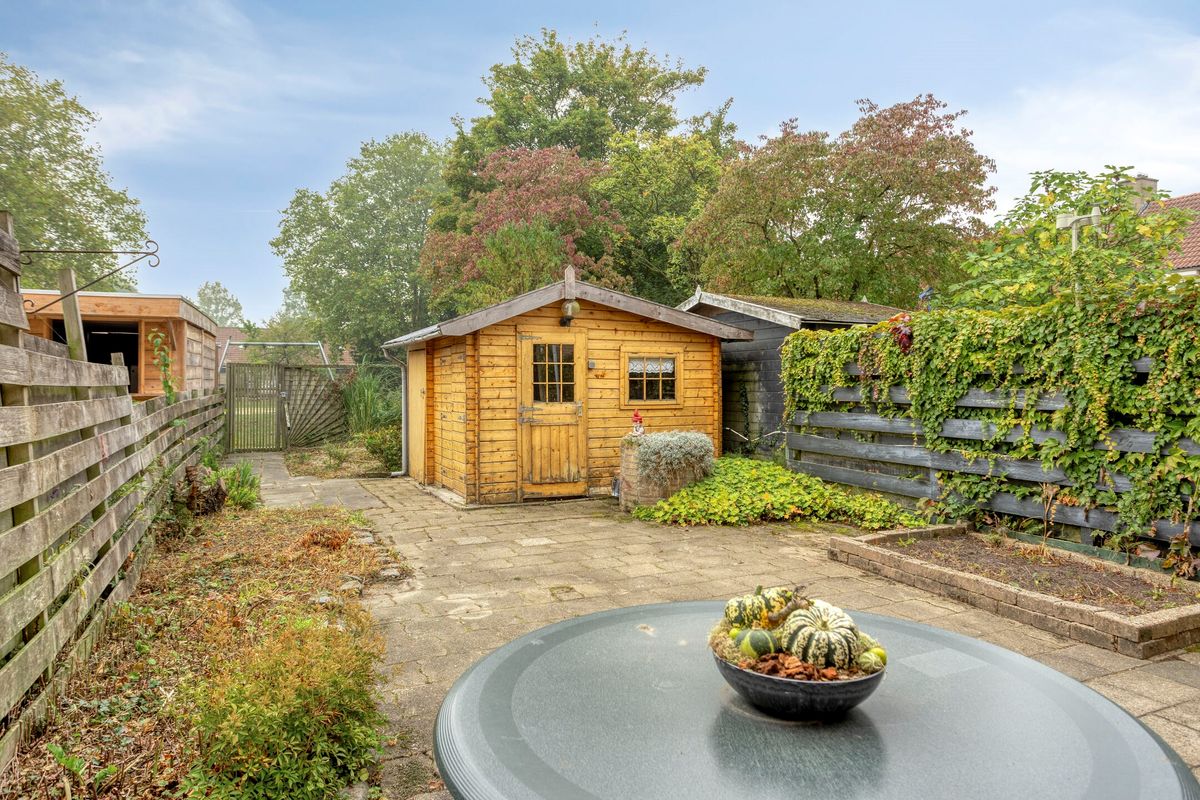 De achtertuin is gelegen op het zuiden en biedt veel privacy. Via de tuin heeft u toegang tot een groot veld met speeltoestellen, een heerlijke plek voor kinderen. Het achterste gedeelte van de tuin, vanaf de houten berging tot de achterzijde, wordt van de gemeente gehuurd. Als u de tuinpoort uitgaat bent u direct op een groot veld met diverse speeltoestellen.