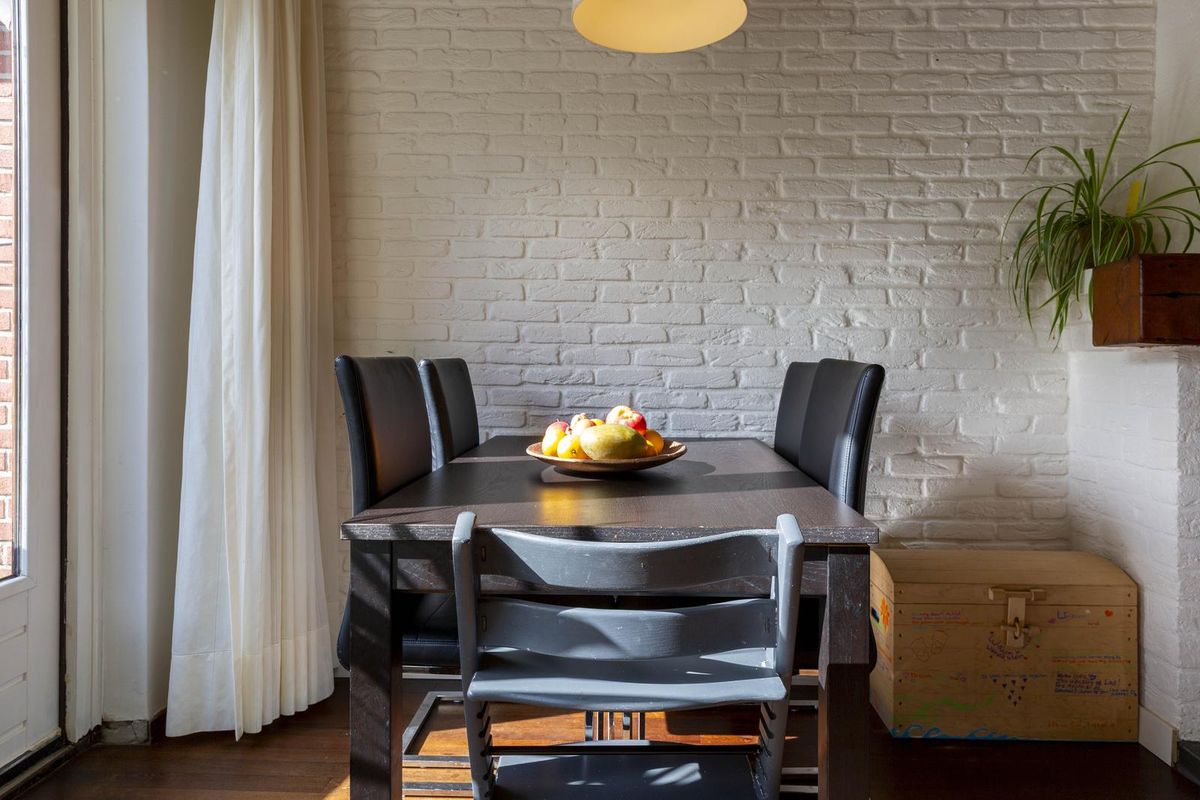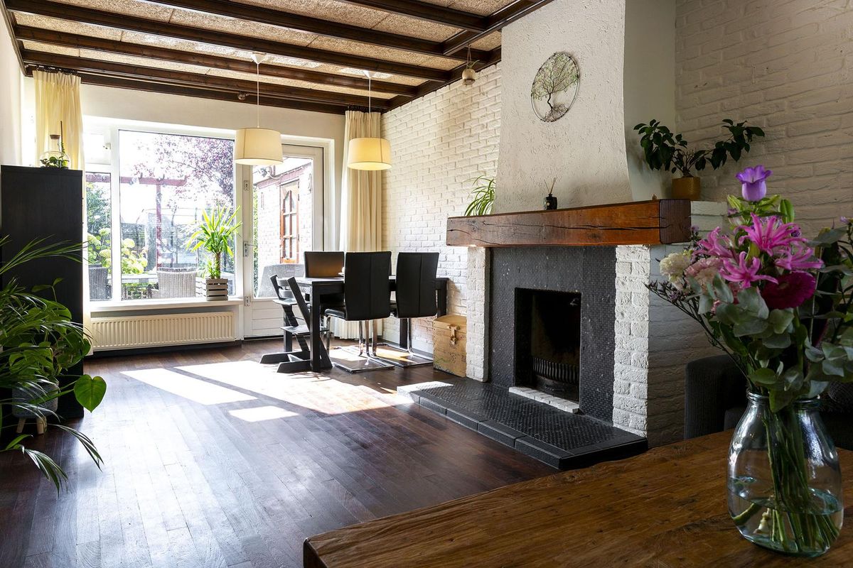 Aan de achterzijde van de woonkamer treffen we het eetgedeelte aan, hier geniet u van volledige privacy met uitzicht over de tuin. Door de grootte van de woonkamer is er voldoende ruimte voor een flinke eettafel! De gezellige open haard maakt deze woonkamer compleet.