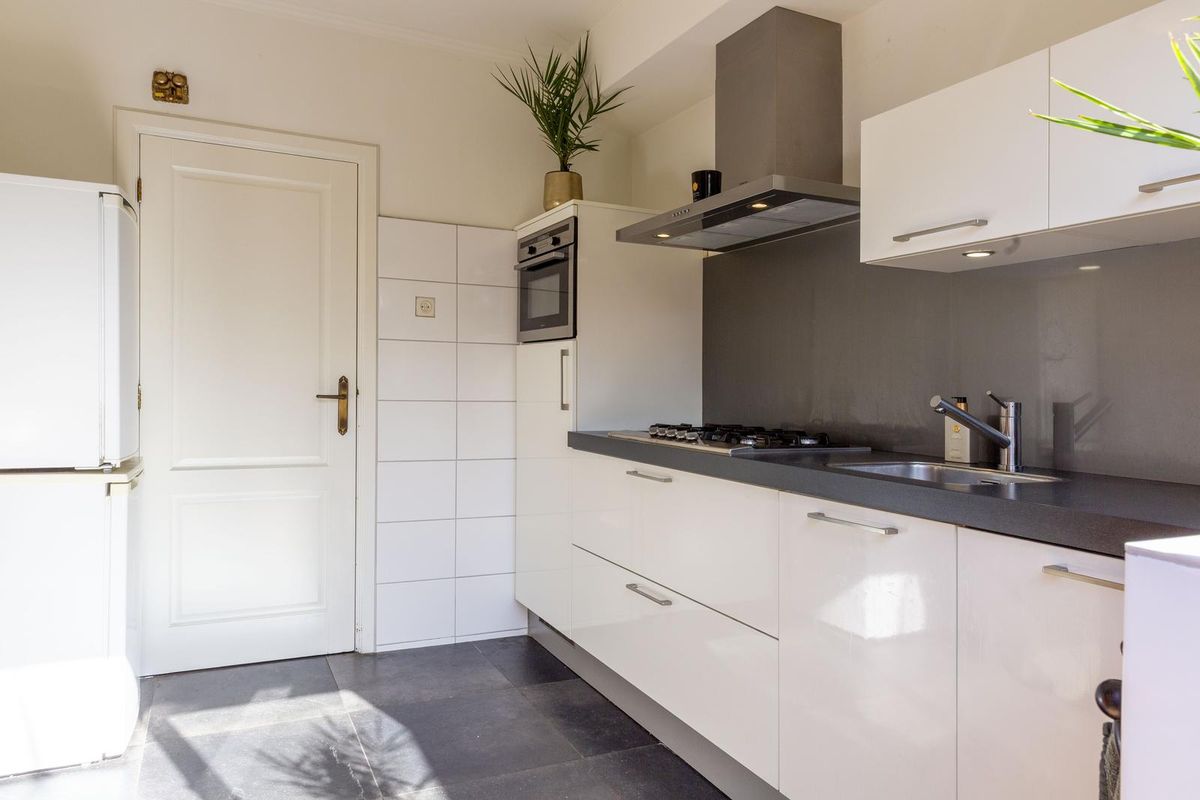 Vanuit de hal is eveneens de keuken gelegen. De moderne keuken uit 2018 is volledig voorzien van inbouwapparatuur, waaronder een 5-pits gaskookplaat, afzuigschouw, koelkast, oven, close-in boiler en uiteraard een vaatwasser.