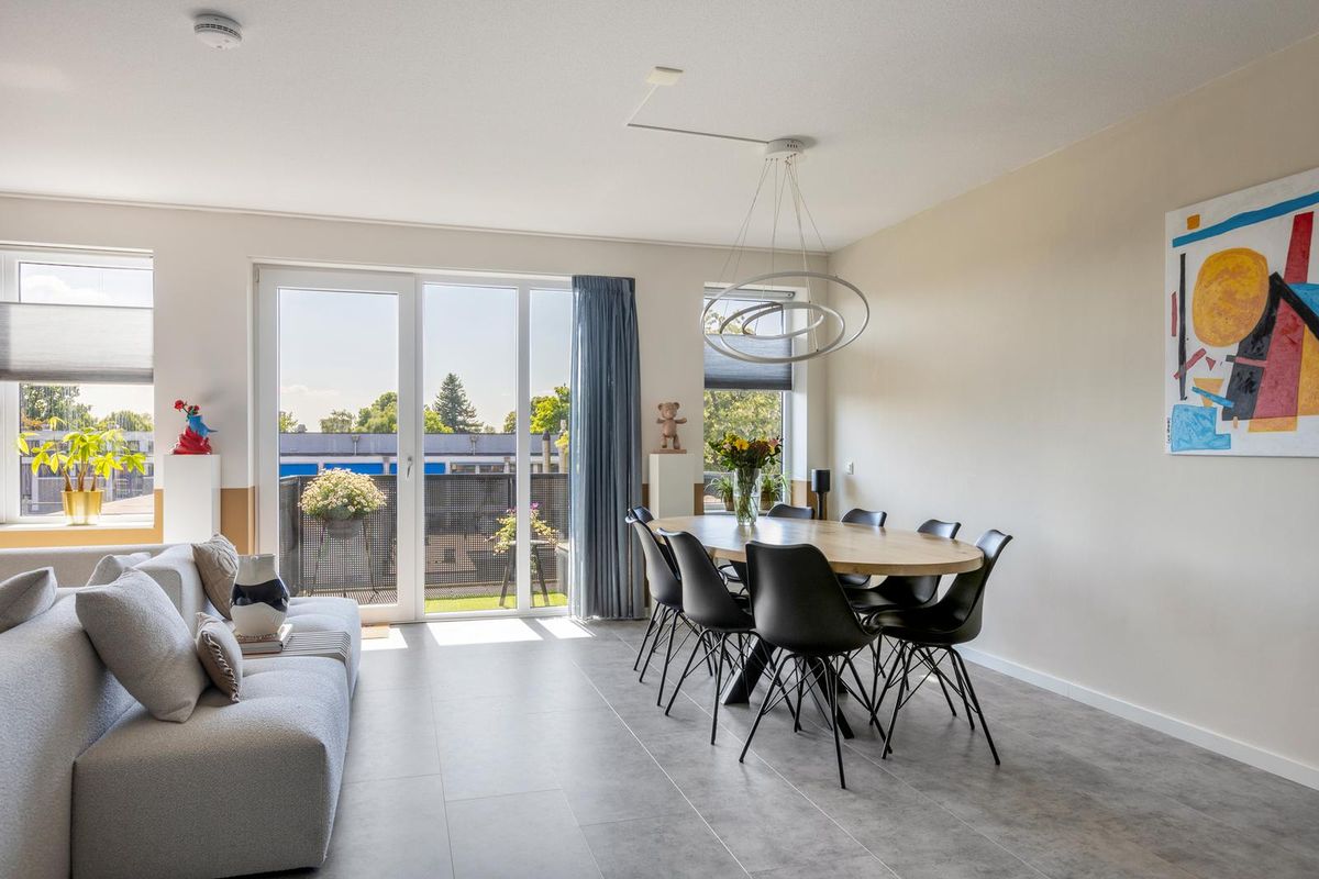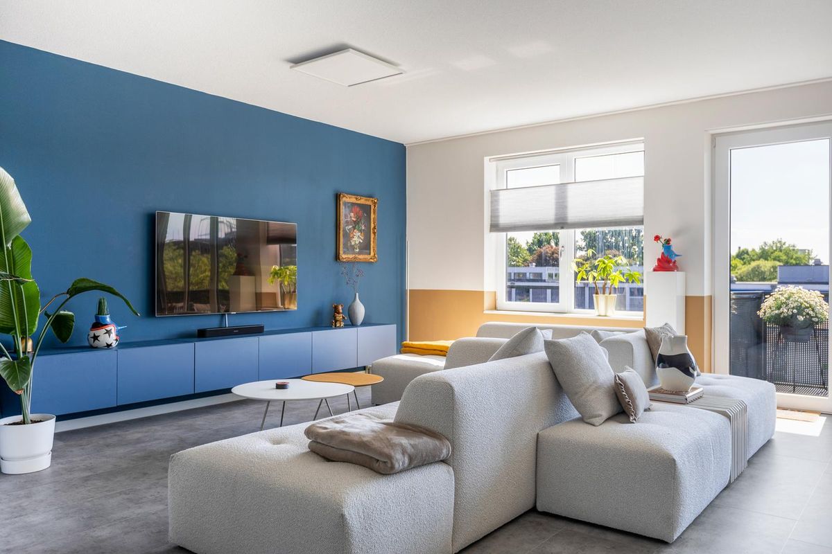 De woonkamer van dit appartement is echt zo’n plek waar je je meteen thuis voelt. Het is een open en lichte ruimte waar je met gemak een flinke zithoek én een grote eettafel kwijt kunt – ideaal voor gezellige avonden met vrienden of lekker lang tafelen. Via de woonkamer loop je zo het balkon op, dat heerlijk op het zuidwesten ligt; perfect voor een borrel in de avondzon. Ook praktisch: in de woonkamer zit een ruime voorraadkast, superhandig voor alles wat je uit het zicht wilt houden. De strakke afwerking geeft het geheel een frisse en moderne uitstraling. Kortom: een fijne, leefbare ruimte waar alles klopt.