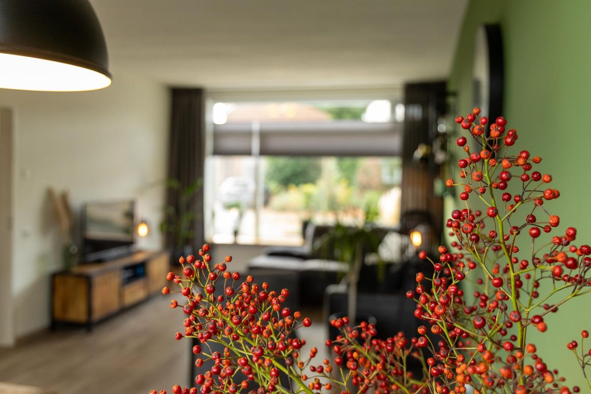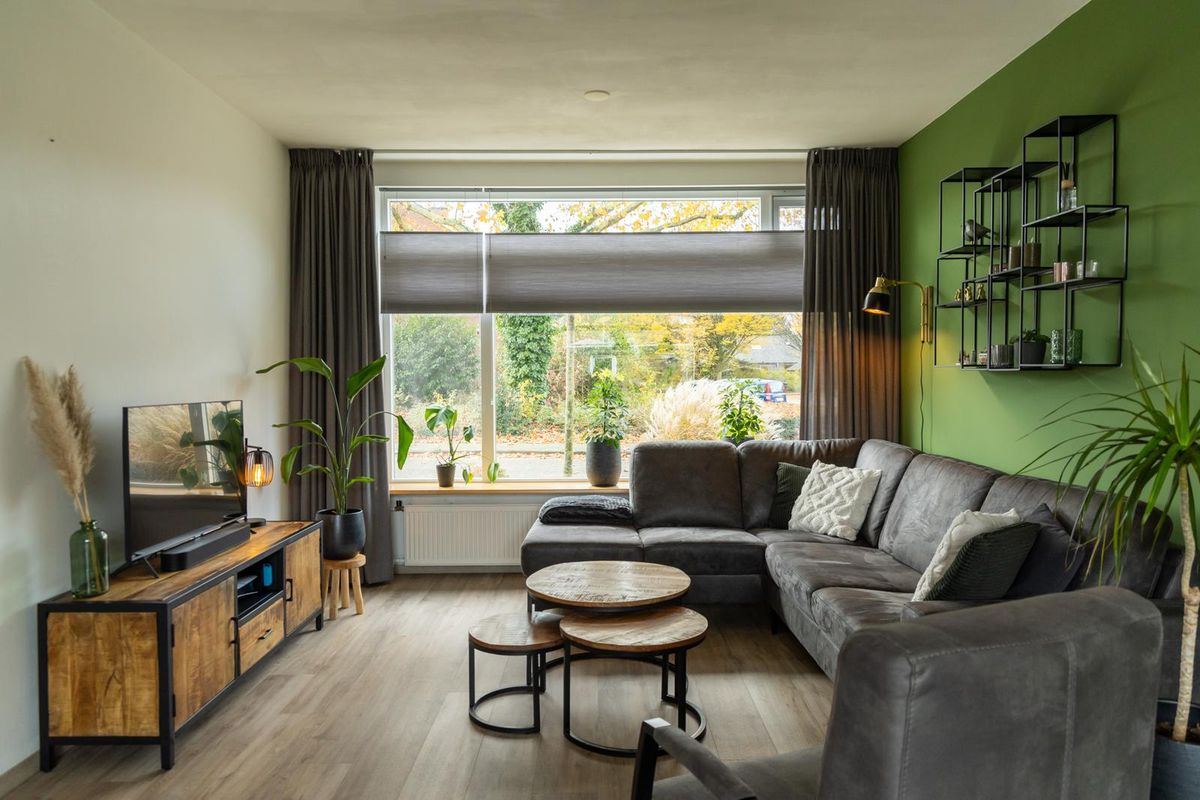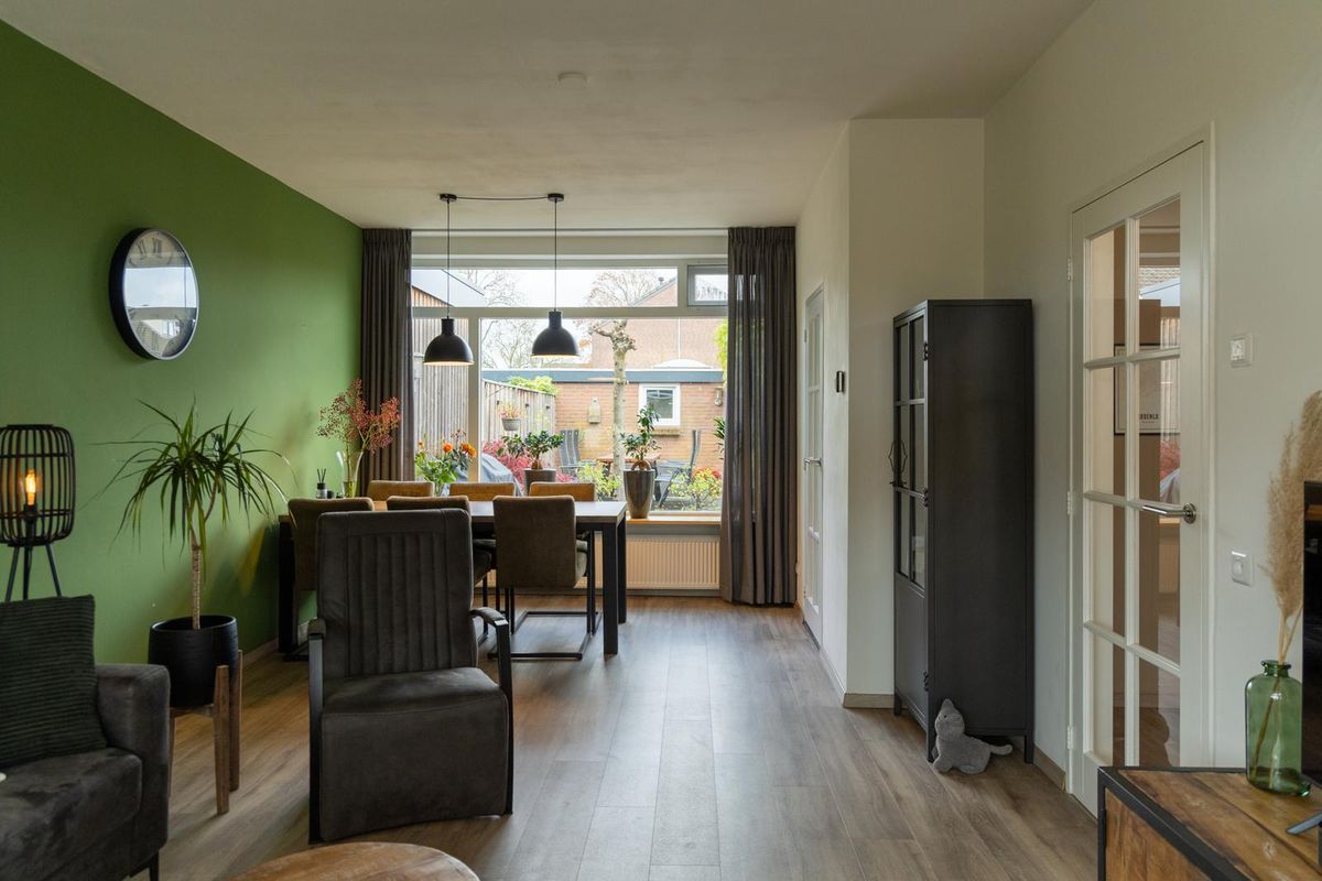 Vanuit de hal bereikt u de lichte woonkamer met een gezellige zithoek aan de voorzijde en de eetkamer aan de tuinzijde. De grote ramen zorgen voor veel daglicht en een prettige sfeer.