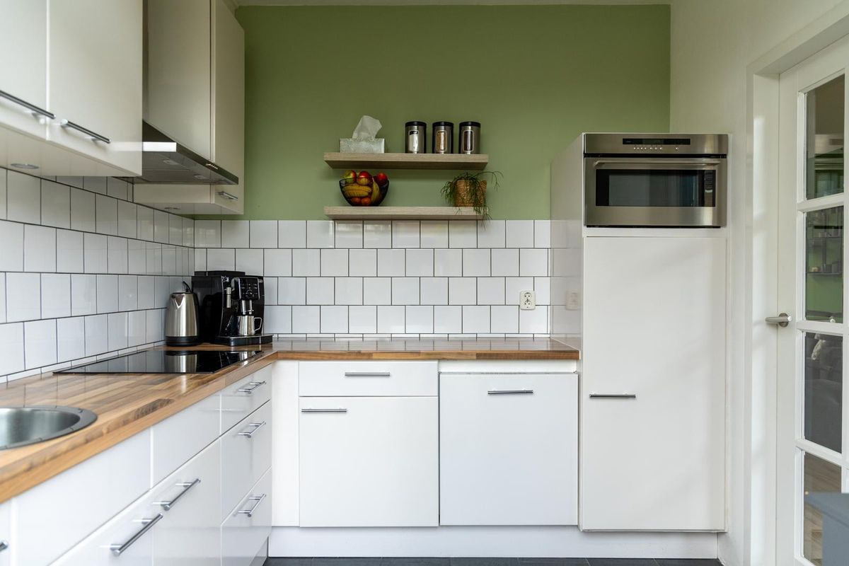 De gesloten keuken is netjes en praktisch ingericht en beschikt over moderne apparatuur (allen vernieuwd in 2021), waaronder een vaatwasser, inductiekookplaat, combimagnetron, koelkast en afzuigkap.