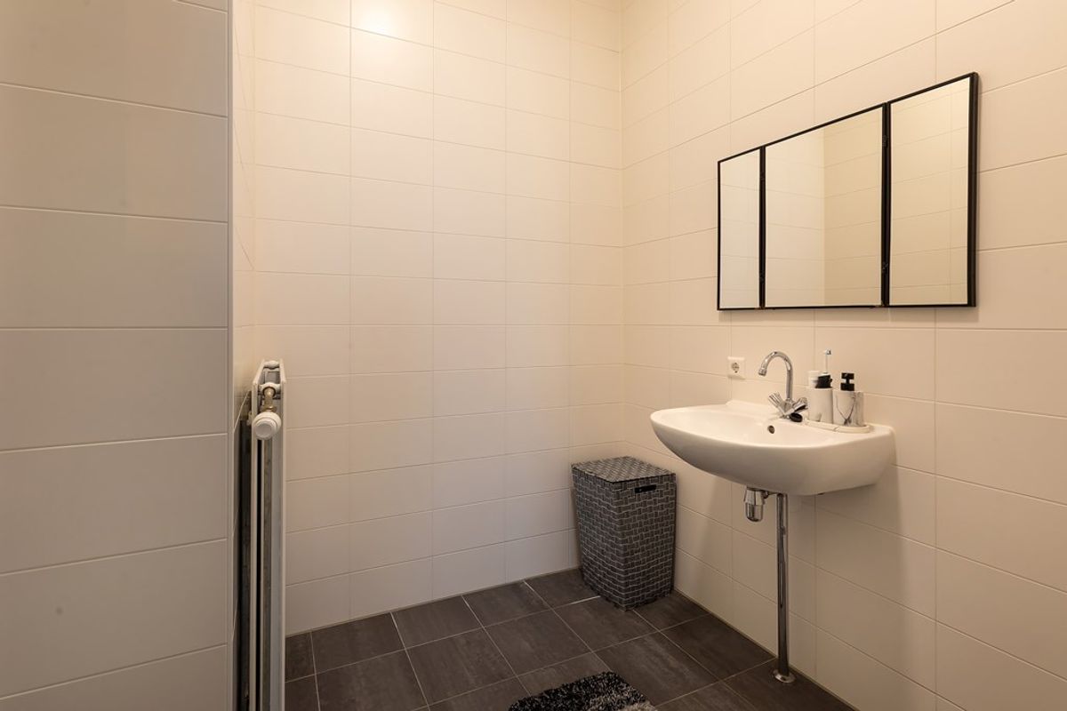 De badkamer is modern en netjes afgewerkt met een inloopdouche en wastafelmeubel. De vloerverwarming maakt het aangenaam en de mechanische ventilatie -die door het gehele appartement is aangelegd- zorgt voor een fris gevoel.