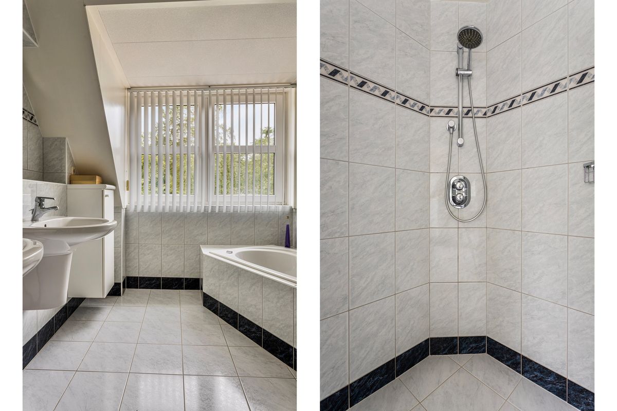 Via de overloop zijn er drie ruime slaapkamers bereikbaar, waarvan de master is voorzien van een inloopkast. De badkamer is voorzien van een inloopdouche, ligbad en twee wastafels. Op de overloop bevindt zich een apart toilet met fontein en bidet.
