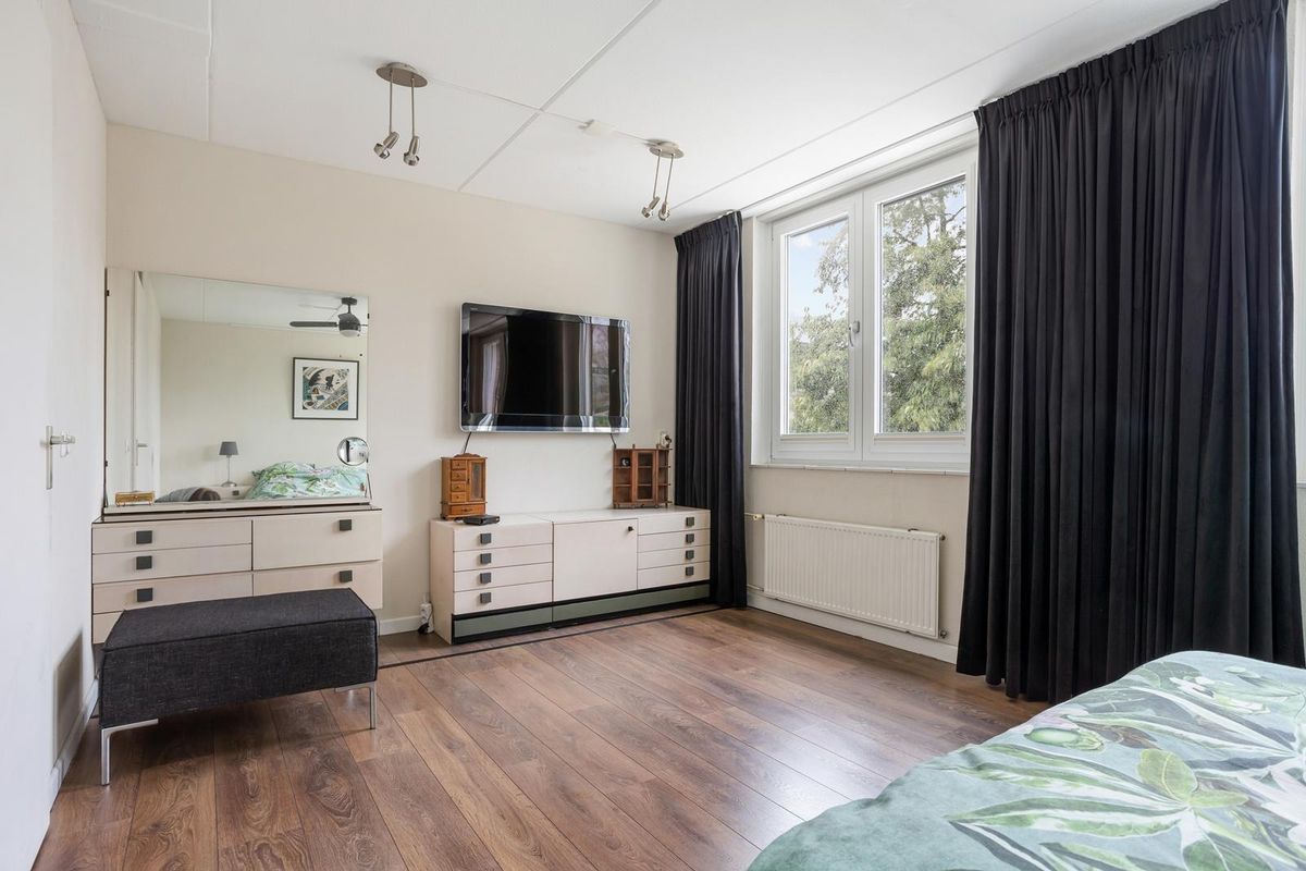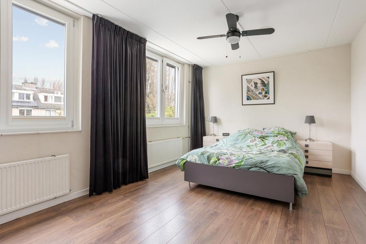 Op de eerste verdieping vindt u de royale hoofdslaapkamer. Deze strekt zich uit over de volle breedte van de woning. Dankzij de royale afmetingen is het mogelijk om hier twee comfortabele slaapkamers van te maken.