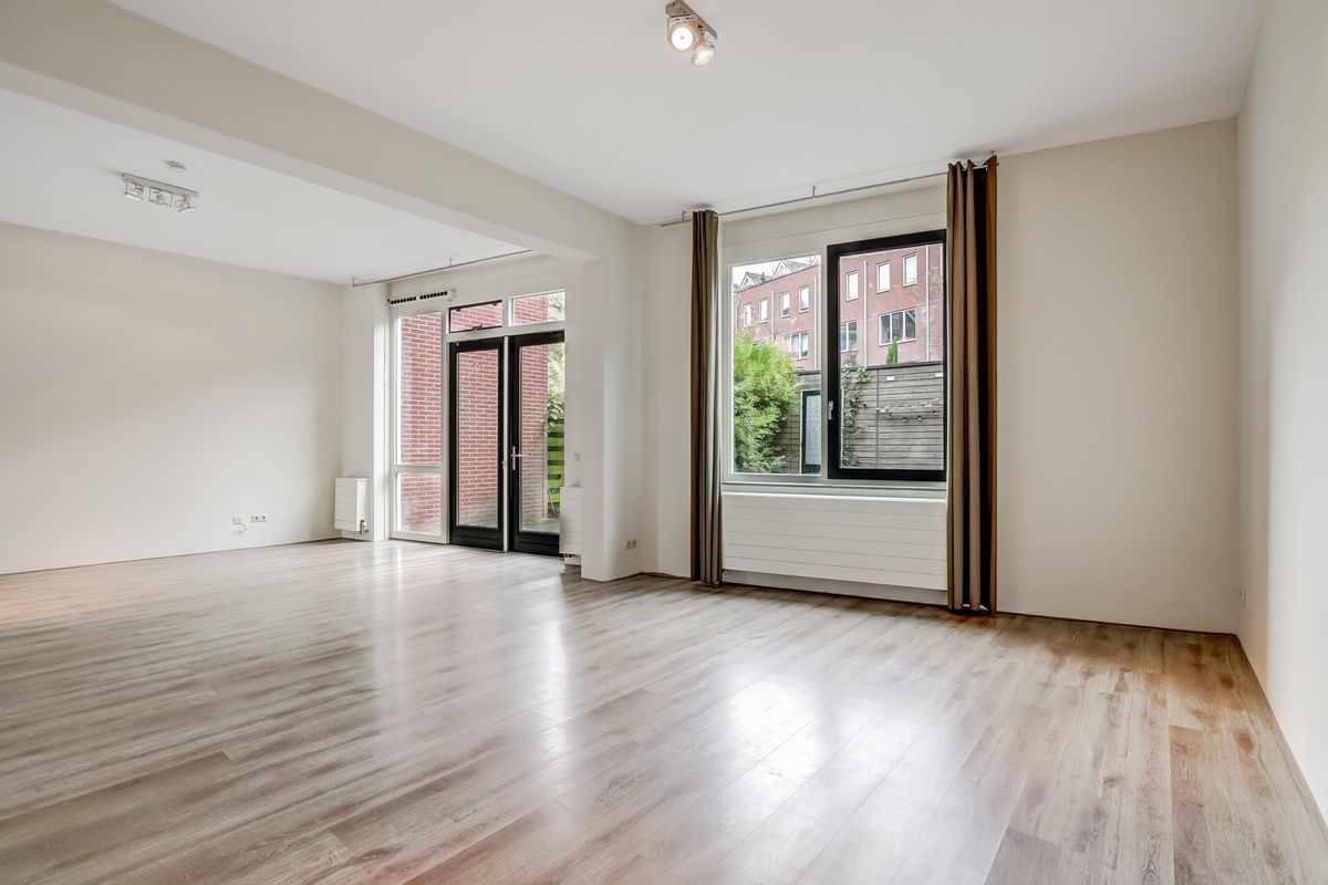 Luxe zeer groot dubbel benedenhuis van maar liefst 168m² met 8.30m brede doorzon woonkamer met open keuken, hoge plafonds , 3 royale slaapkamers en parkeerplaats in afgesloten parkeergarage.