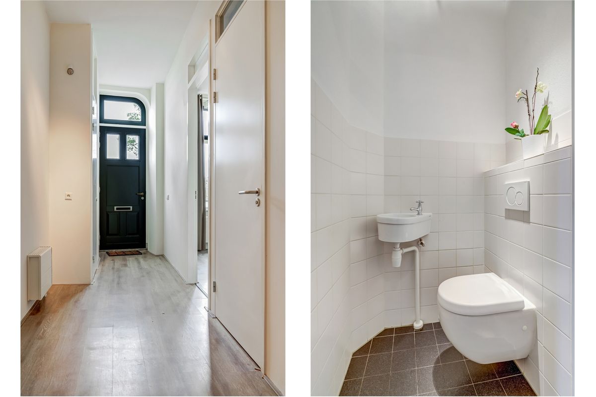 Je komt eerst in een zeer royale gang met toilet en meterkast en dan kun je kiezen voor toegang naar de woonkeuken of verder in de gang direct het woongedeelte in te lopen.