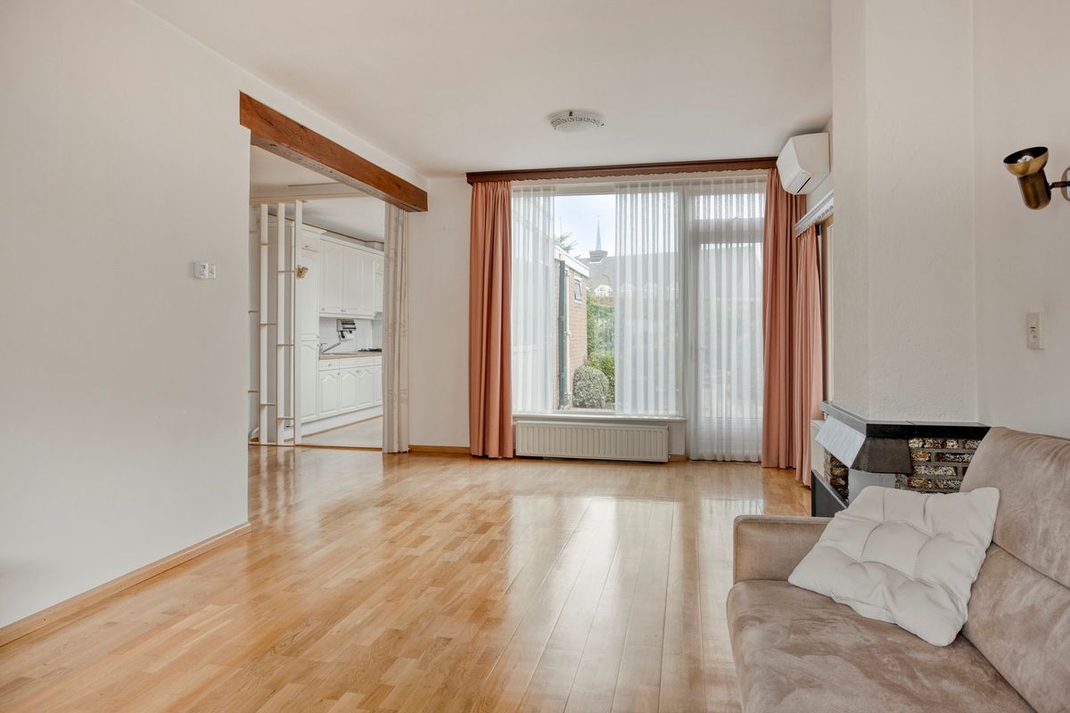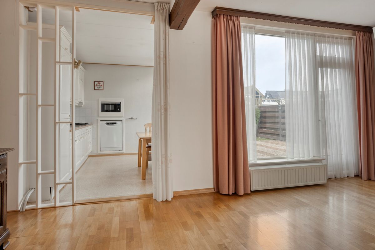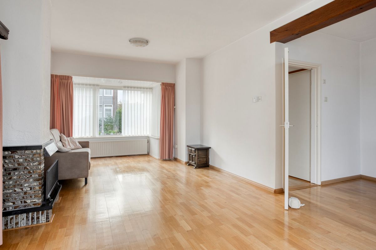 De lichte doorzonwoonkamer beschikt over een erker aan de voorzijde, wat zorgt voor een prettige lichtinval en extra ruimte.
