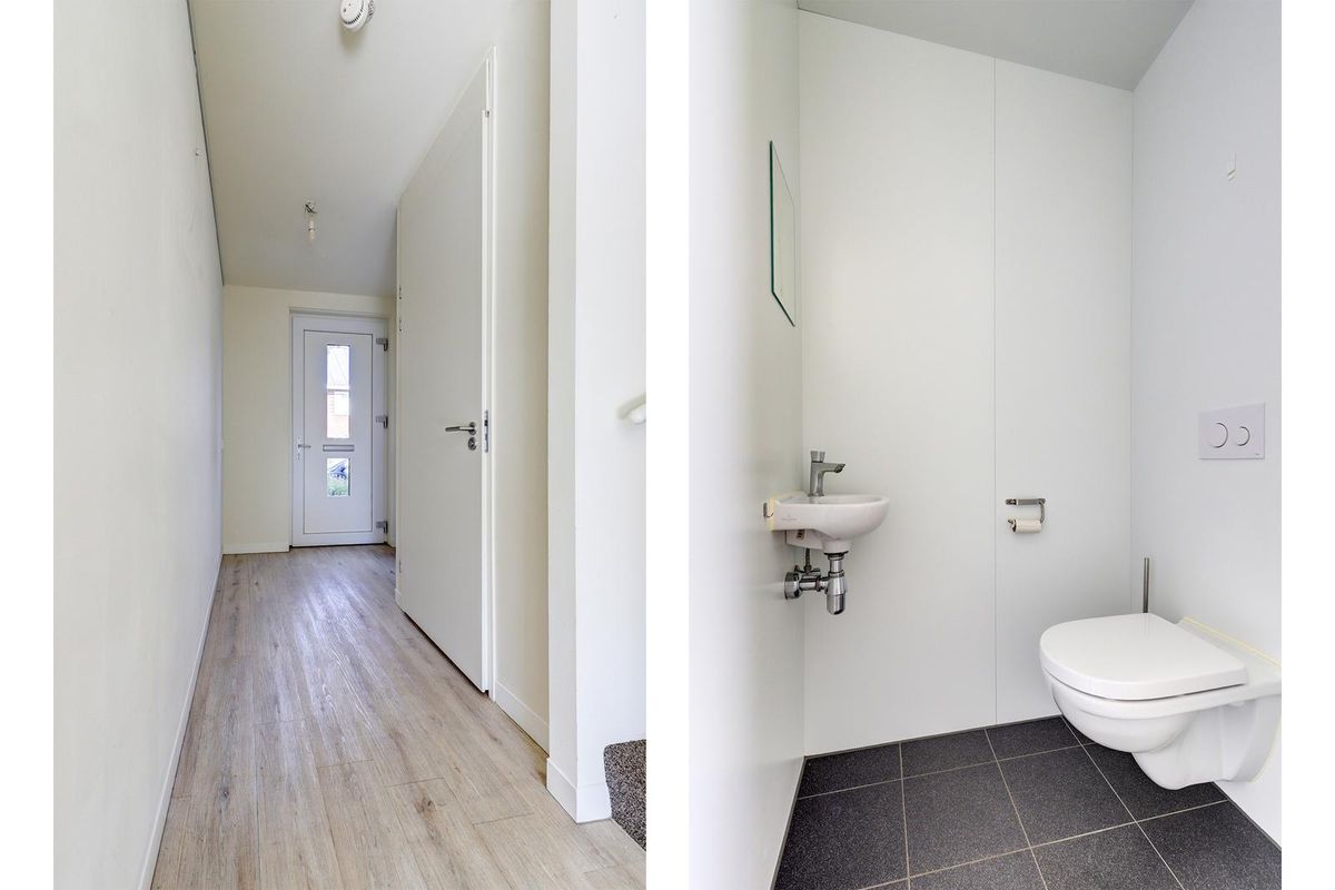 • Strakke afwerking in neutrale kleuren (witte wanden, houtlook vloer)