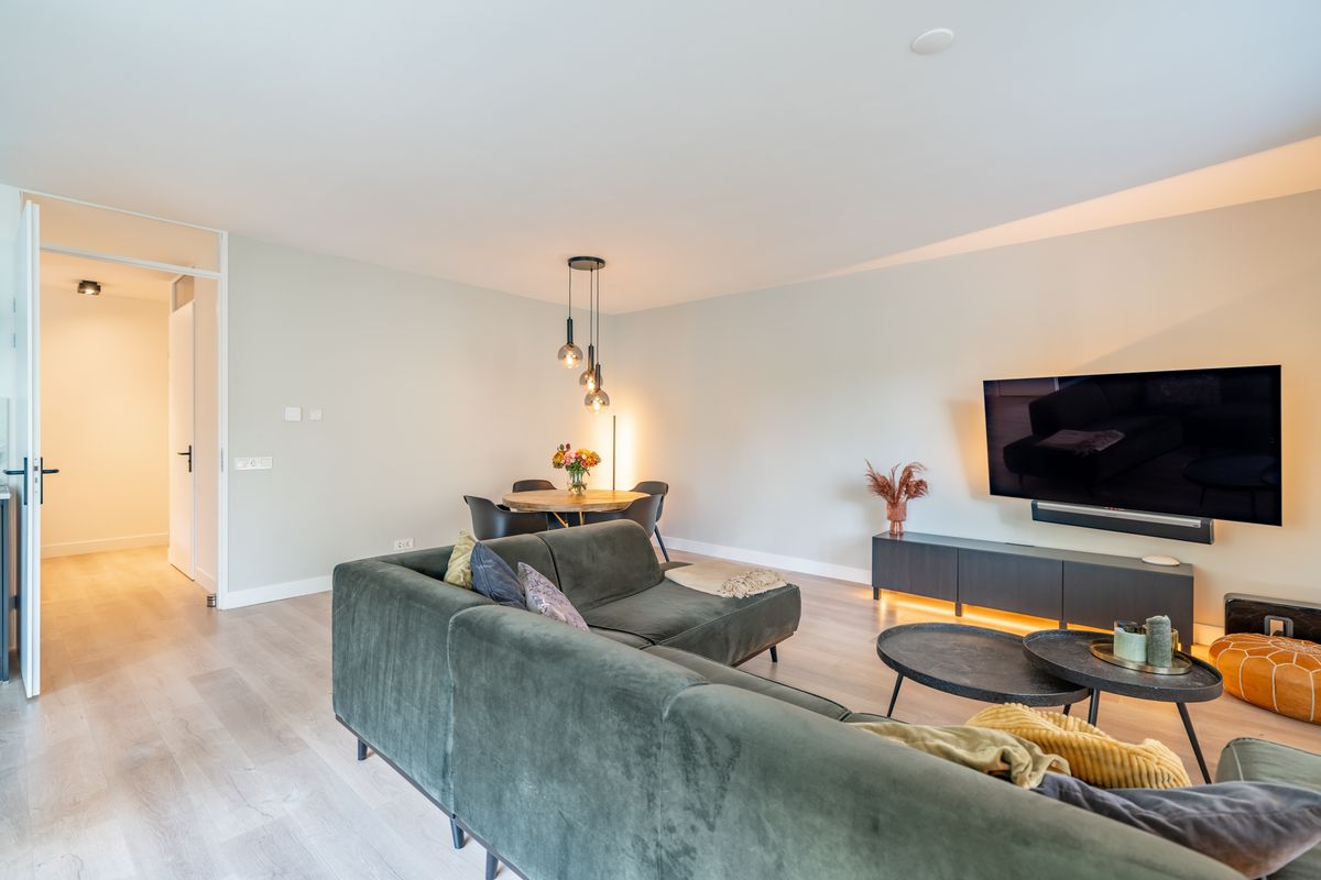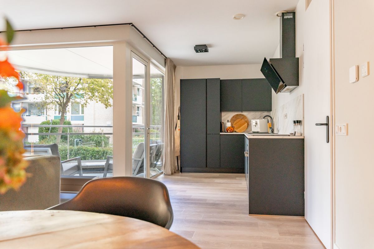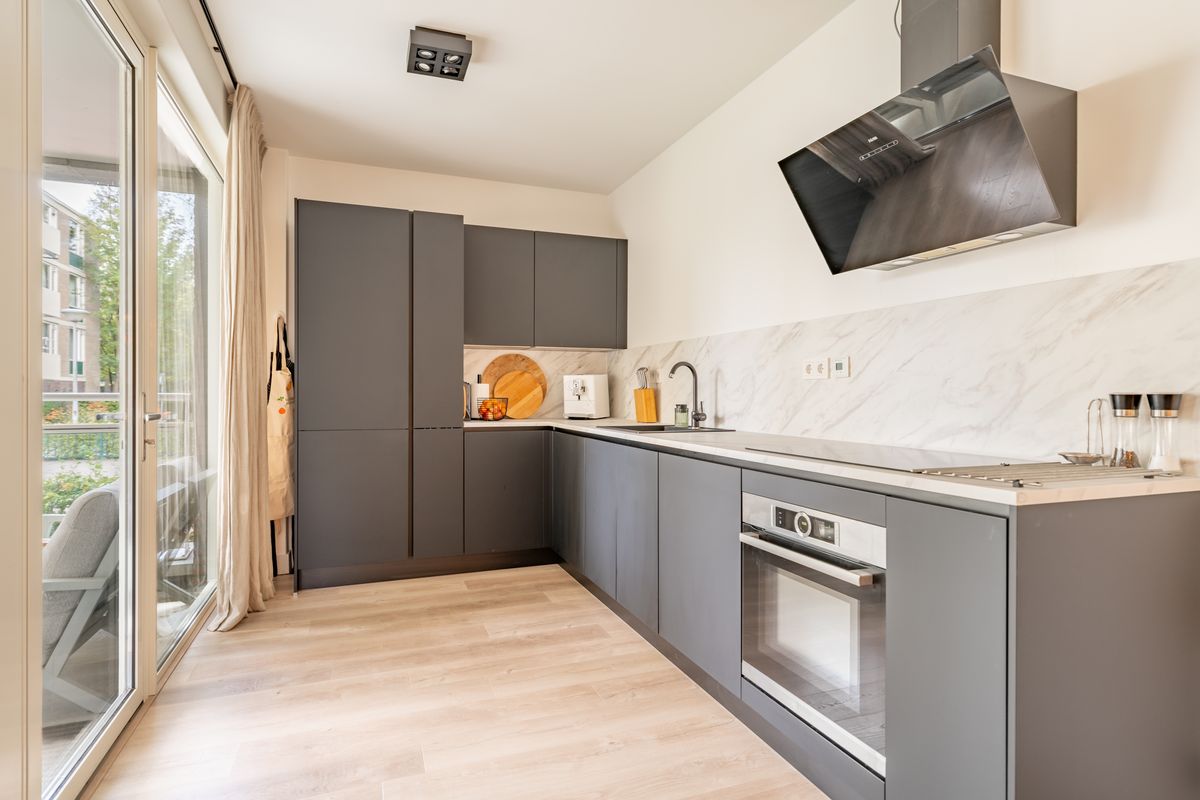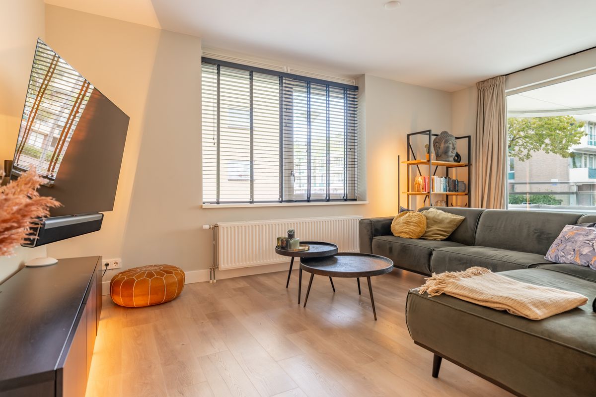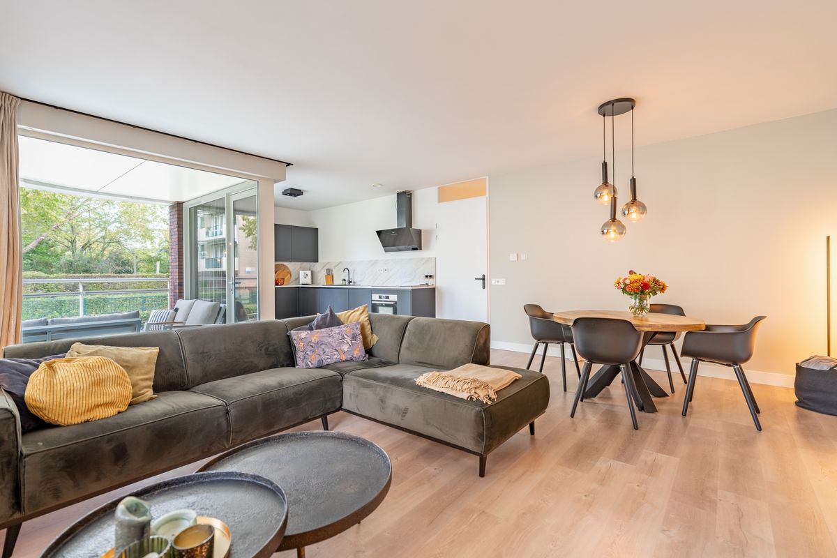 De lichte woonkamer heeft een prettige open indeling en staat in directe verbinding met de moderne open keuken (2022), welke is uitgerust met diverse inbouwapparatuur: een inductiekookplaat, combi-oven/magnetron, koelkast met vriesvak en een afzuigkap. Vanuit de woonkamer heeft u toegang tot het ruime balkon van circa 7 m², een heerlijke plek om van de zon te genieten.