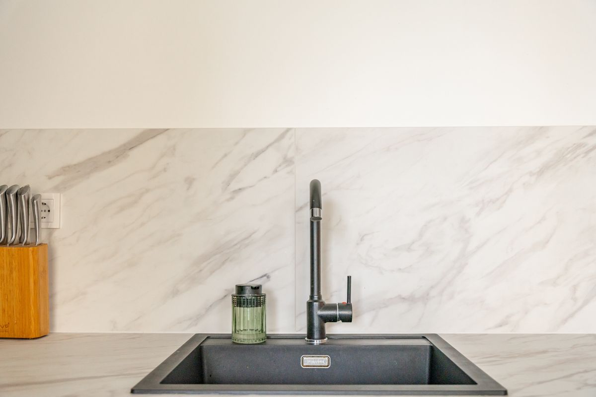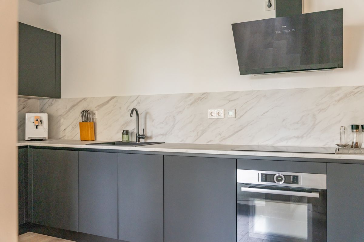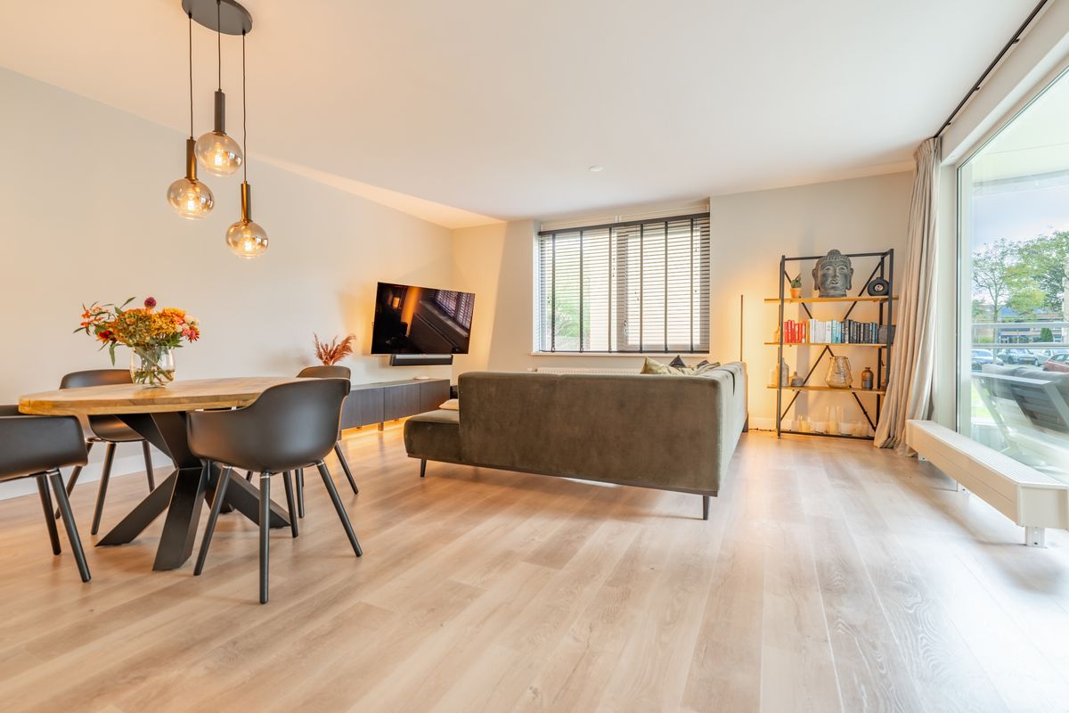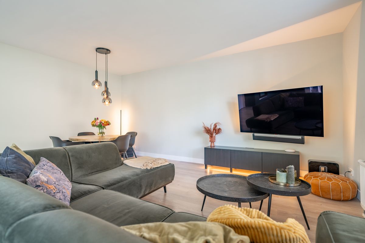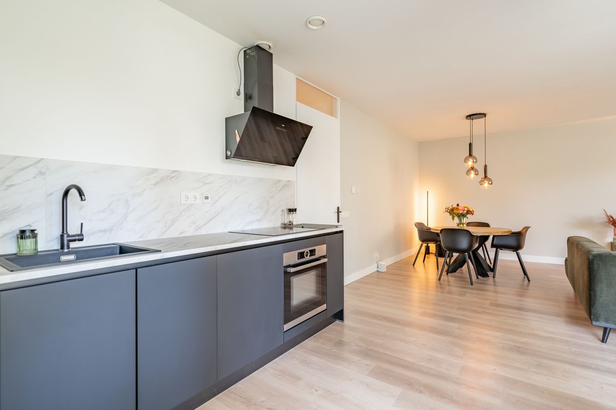 De lichte woonkamer heeft een prettige open indeling en staat in directe verbinding met de moderne open keuken (2022), welke is uitgerust met diverse inbouwapparatuur: een inductiekookplaat, combi-oven/magnetron, koelkast met vriesvak en een afzuigkap. Vanuit de woonkamer heeft u toegang tot het ruime balkon van circa 7 m², een heerlijke plek om van de zon te genieten.