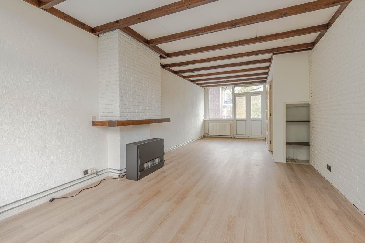 * Woonkamer voorzien van laminaatvloer, schouw met opstelling van de moederhaard, open kast en openslaande deuren naar het balkon aan de voorzijde.