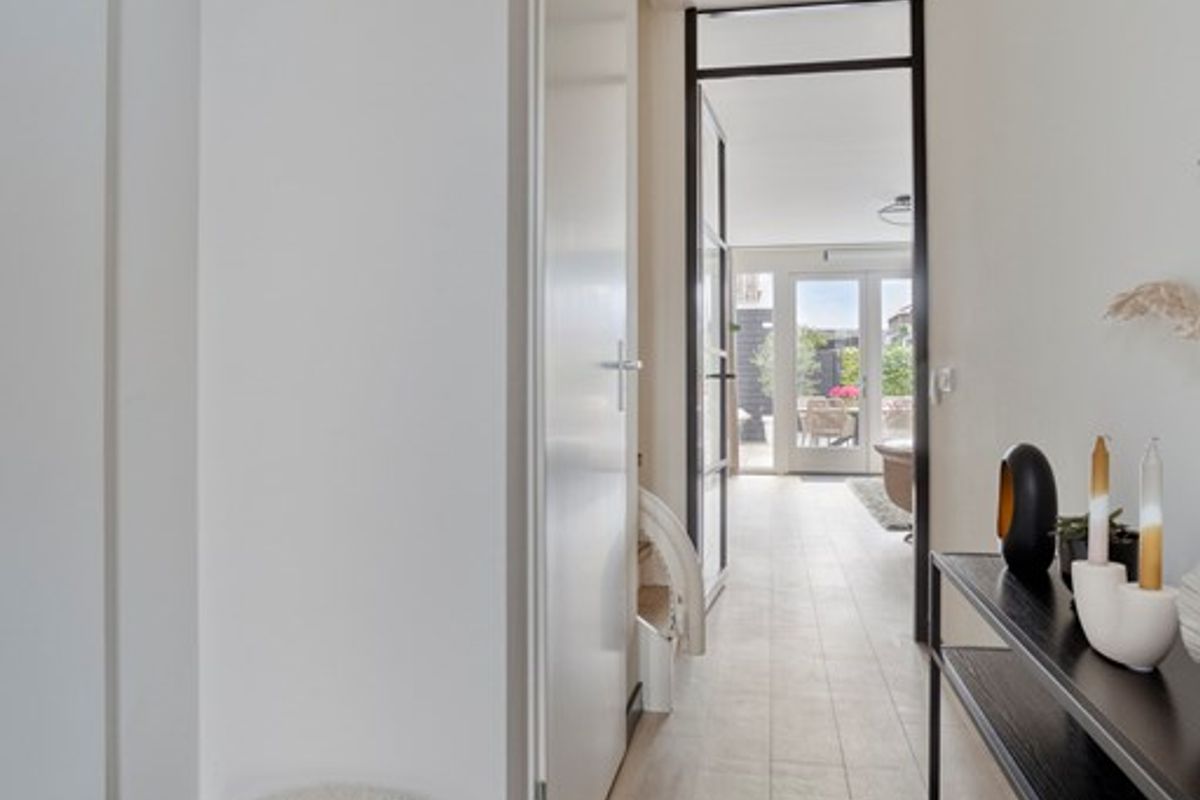 Achter de woning ligt een zonnige tuin die grotendeels bestraat is en daardoor onderhoudsarm. U heeft hier volop ruimte voor een loungeset of een groot terras, zodat u in alle rust kunt genieten van de vele zonuren. De tuin is voorzien van een handige berging voor fietsen of tuingereedschap en via de poort bereikt u eenvoudig de achterzijde van het perceel. Dit maakt de buitenruimte ideaal voor zowel ontspanning als praktisch gebruik.