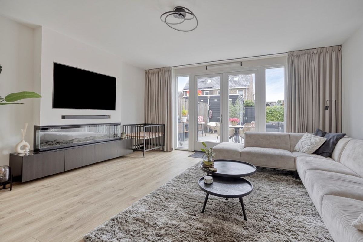 In de woonkamer geniet u van veel lichtinval door de ramen rondom en de openslaande deuren naar de tuin. De open indeling biedt volop mogelijkheden voor een gezellige zithoek en een ruime eethoek. Een ingebouwde haard vormt de sfeervolle eyecatcher, waardoor dit de ideale plek wordt om te ontspannen of gasten te ontvangen.