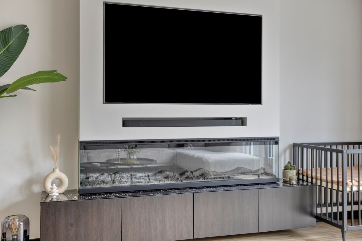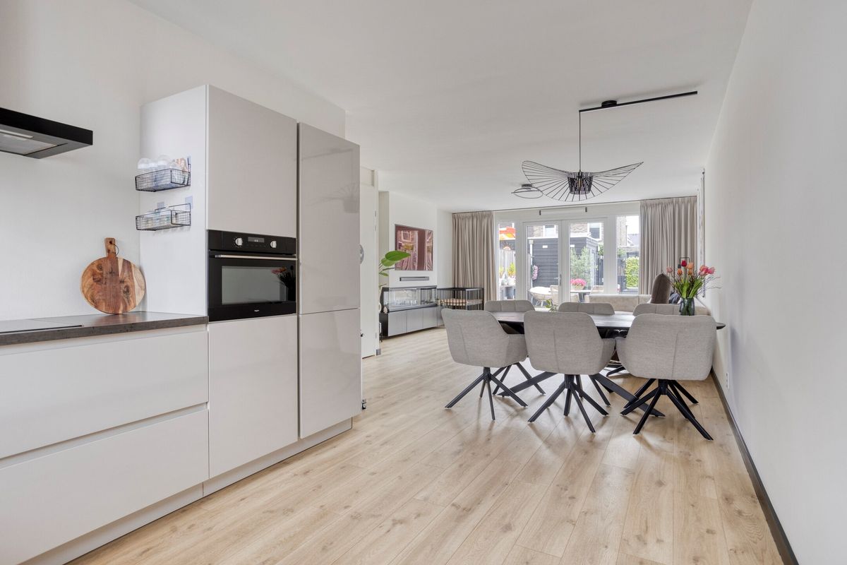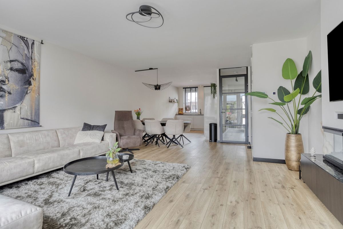 In de woonkamer geniet u van veel lichtinval door de ramen rondom en de openslaande deuren naar de tuin. De open indeling biedt volop mogelijkheden voor een gezellige zithoek en een ruime eethoek. Een ingebouwde haard vormt de sfeervolle eyecatcher, waardoor dit de ideale plek wordt om te ontspannen of gasten te ontvangen.