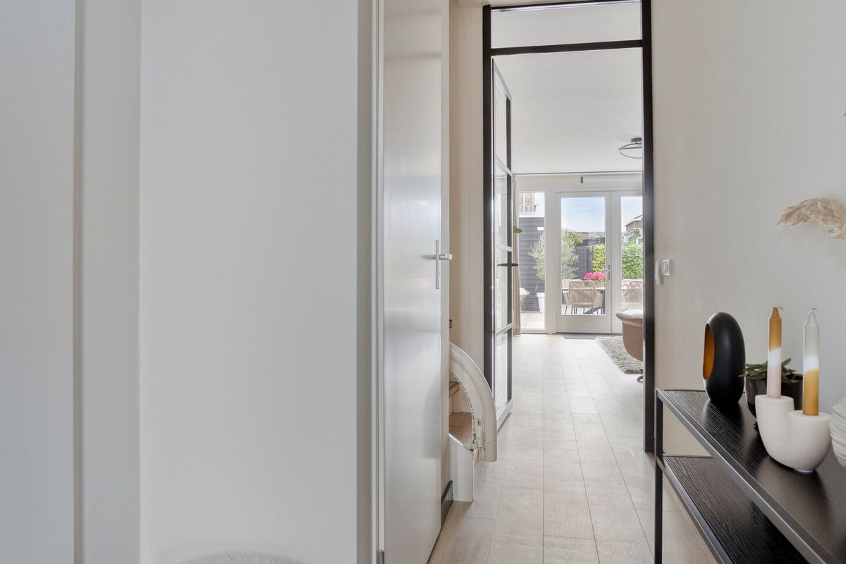 Achter de woning ligt een zonnige tuin die grotendeels bestraat is en daardoor onderhoudsarm. U heeft hier volop ruimte voor een loungeset of een groot terras, zodat u in alle rust kunt genieten van de vele zonuren. De tuin is voorzien van een handige berging voor fietsen of tuingereedschap en via de poort bereikt u eenvoudig de achterzijde van het perceel. Dit maakt de buitenruimte ideaal voor zowel ontspanning als praktisch gebruik.