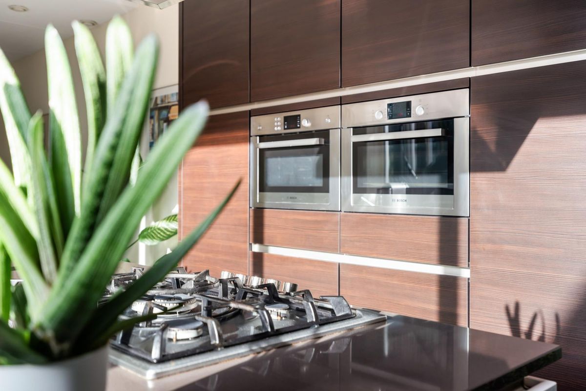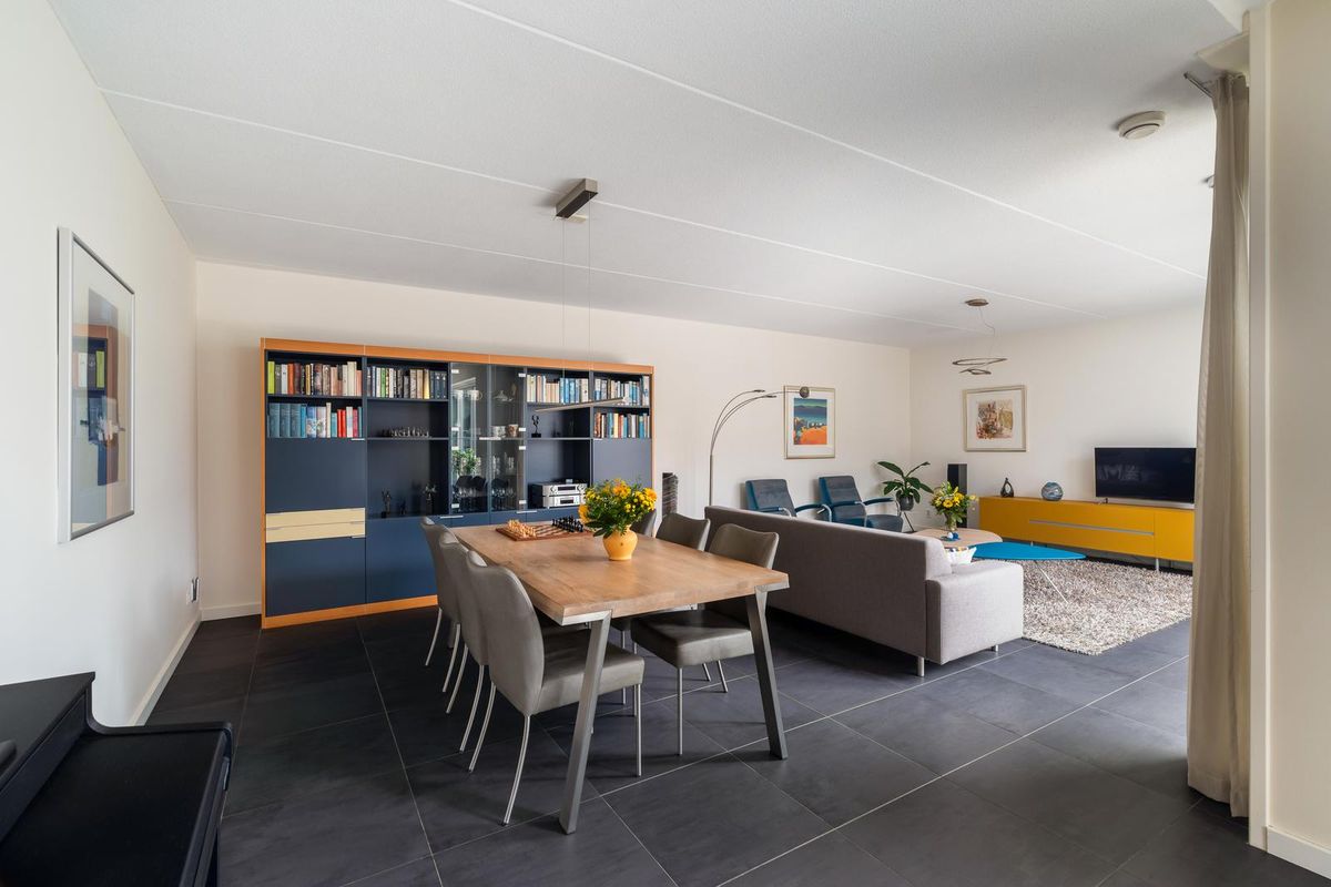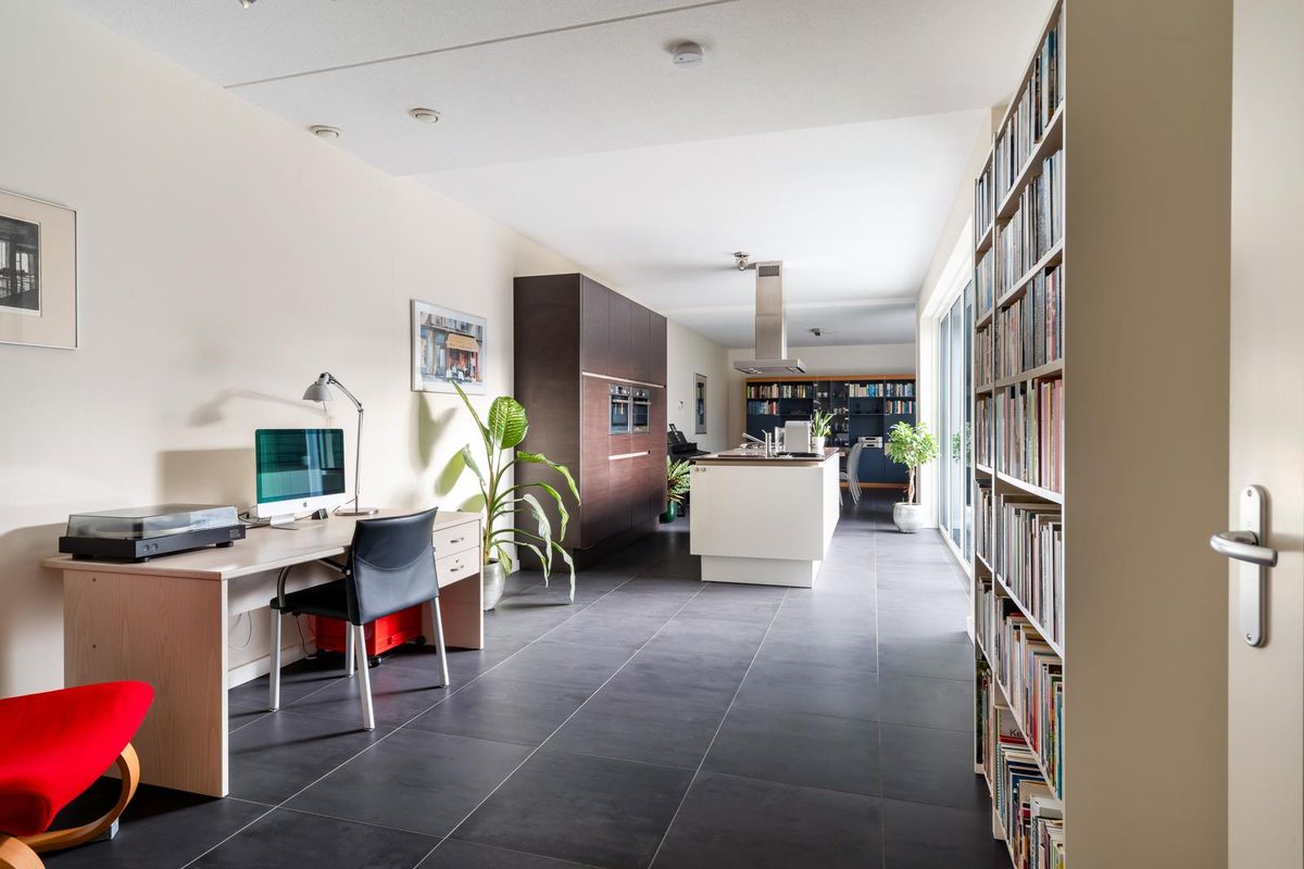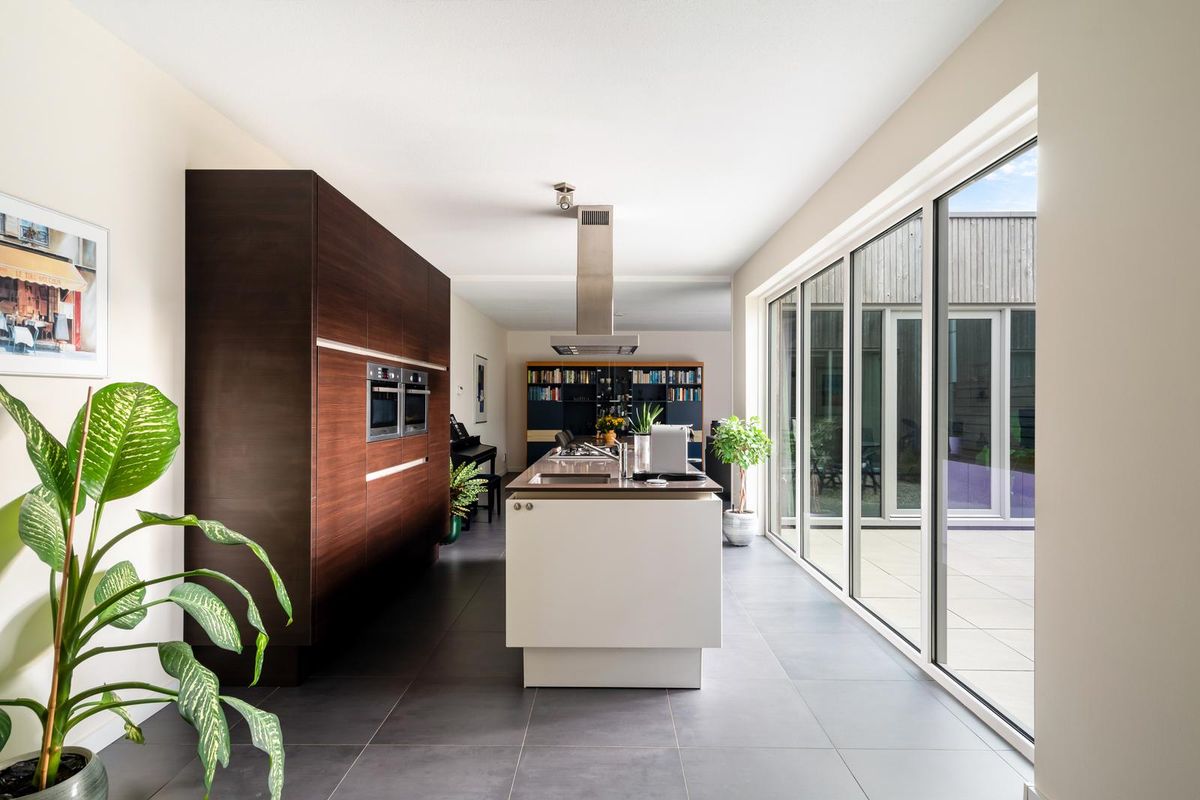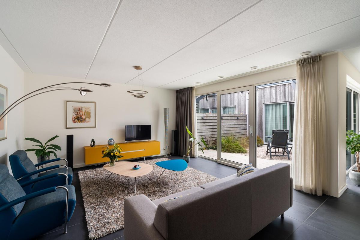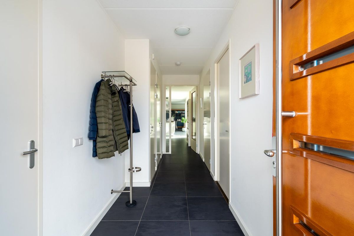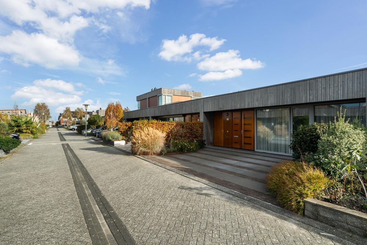 Fraai aangelegde voortuin met groenborders aan de zijkanten en de mogelijkheid om meerdere auto’s direct voor de deur op eigen terrein te parkeren. Entree/hal met meterkast, modern toilet en aparte was-/stookruimte met de opstelplaatsen van de wasmachine, CV-ketel en WTW-installatie. De keuken heeft een moderne opstelling met een kook-/spoeleiland en inbouwapparatuur (koelkast, vriezer, vaatwasmachine, 5-pits gaskookplaat, oven, magnetron en afzuigkap). De L-vormige indeling van de woonkamer en keuken zorgt ervoor dat er vanuit de keuken goed zicht is op zowel de living als de patiotuin en dat de ruimte aangenaam licht is. De woon- en eetkamer hebben een mooie afmeting, met een breedte van maar liefst 8.34 meter. Via de schuifpui is de eveneens fraai aangelegde patiotuin toegankelijk, met buitenkraan, betegeld terras, grindterras en voldoende ruimte voor groen. Er is een wenteltrap naar het betegelde dakterras.