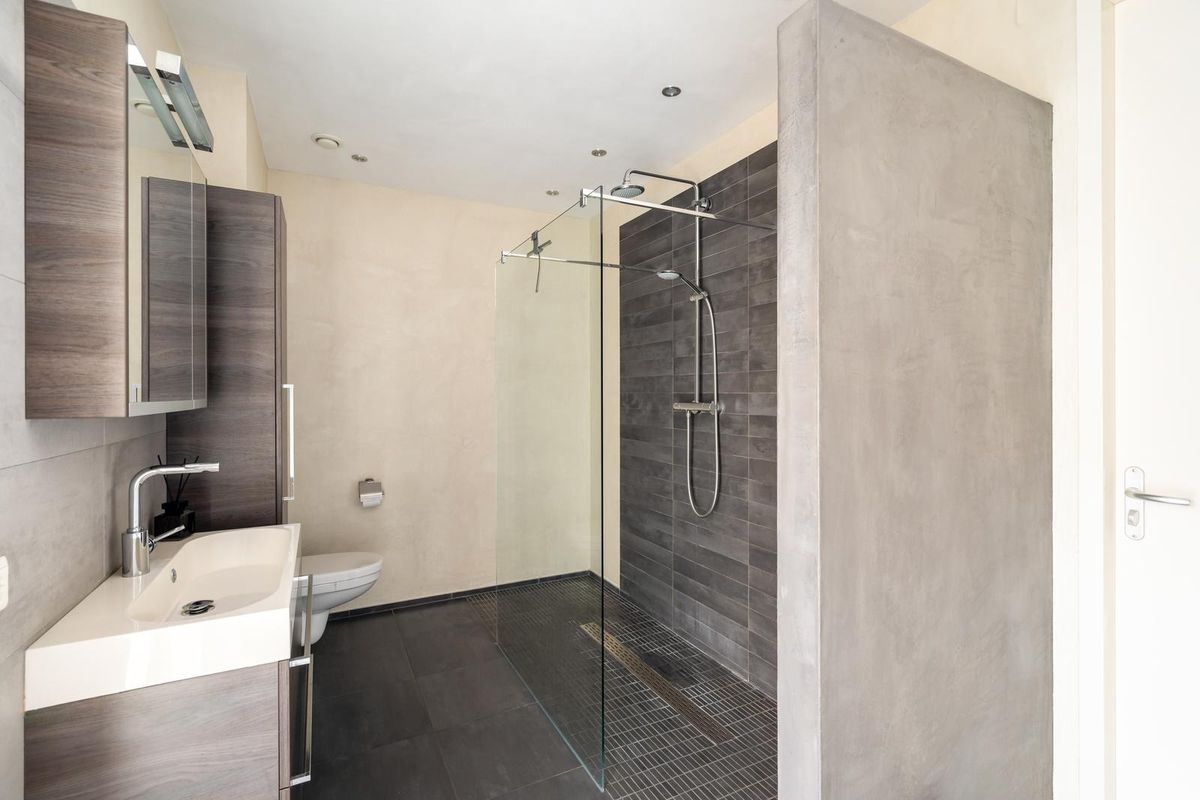 De hoofdslaapkamer grenst ook aan de patiotuin, is afgewerkt met laminaat, heeft een deur naar de badkamer en een schuifpui naar de patio. Deze moderne ingericht badkamer heeft een praktische doorloopdouche, wastafelmeubel, hangend toilet en designradiator. De 2e slaap-/werkkamer ligt aan de voorzijde, heeft een laminaatvloer en een deur direct naar de badkamer. Ook is er een kiep-/draaideur naar de voortuin.