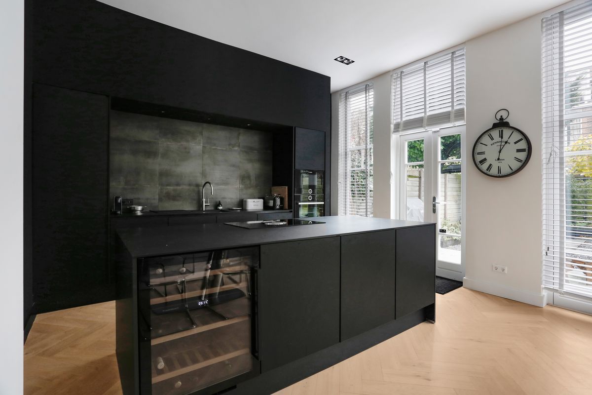 The living room has French doors to the sunny, low-maintenance garden. The modern luxury kitchen with cooking island fits nicely into the space and is equipped with: fridge/freezer, induction hob with integrated extractor system, combi oven/microwave, combi steam oven, sink, dishwasher and wine climate cabinet. The spacious (wine) cellar offers plenty of storage space.