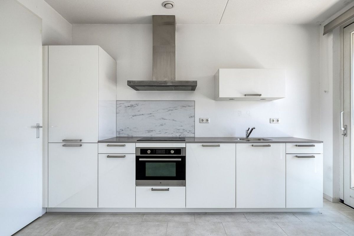 Open keuken voorzien van inbouwapparatuur: vaatwasser, oven, inductiekookplaat