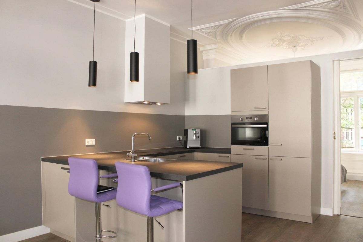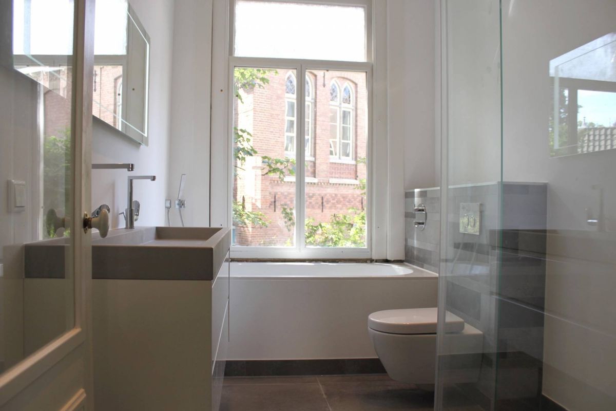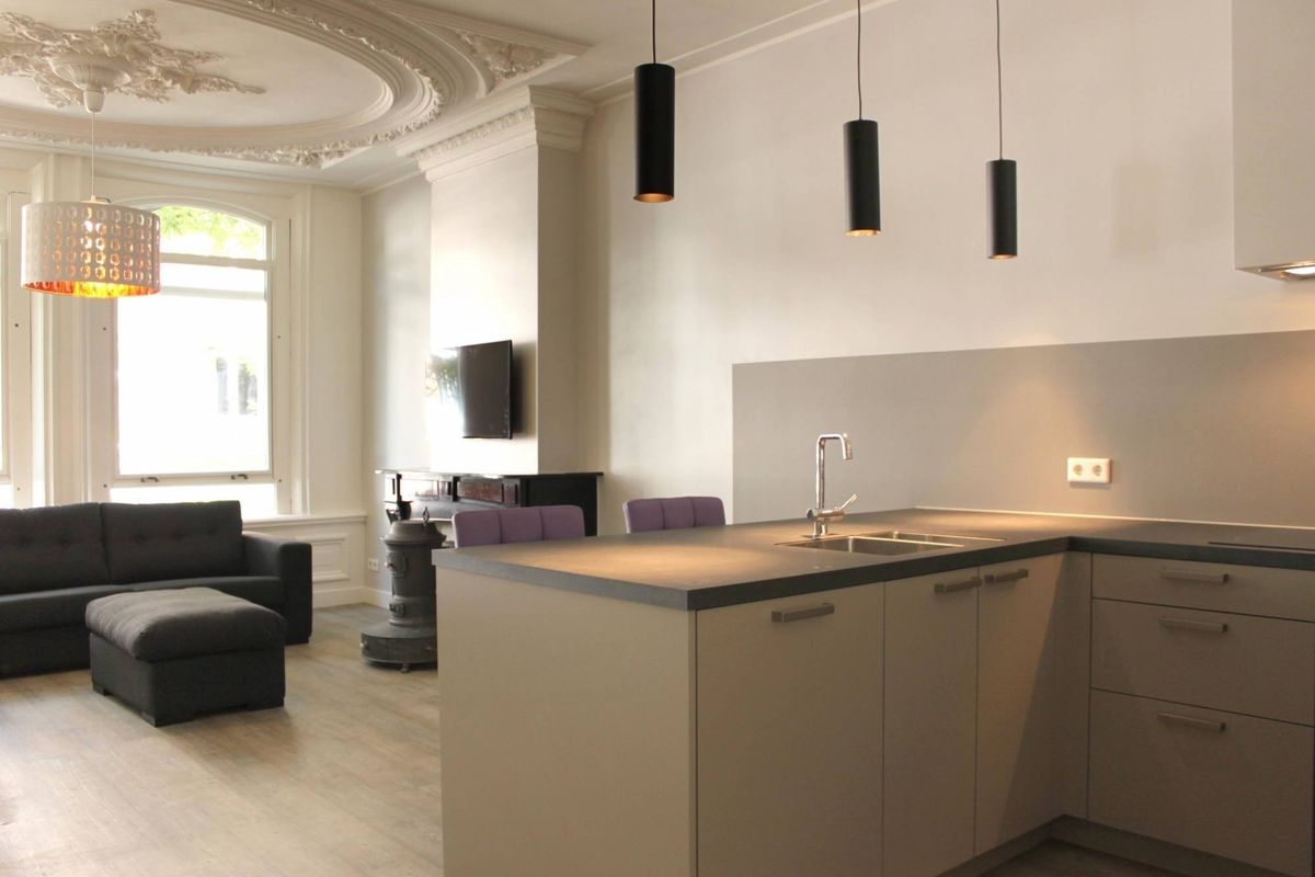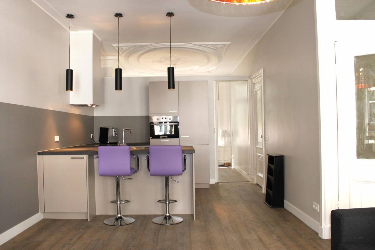 For rent high- quality renovated apartment in the Pijp. The apartment is situated on the first floor of a characteristic Amsterdam building. The original details and ornaments where preserved during the renovation. Combined with the modern and luxurieus finishing the apartment has a nice and warm feel. From the entrance you have acces to the hallway which gives acces to the livingroom with open kitchen and bathroom. The livingroom is completely furnished with high standard furniture. The new and modern bathroom has a walk in shower, bath tub and naturalstone double sink. The open kitchen has all the necessary build in equipment as a dishwasher, combi-oven, refrigurator, freezer and induction stove. The bedroom has a double bed and wardrobe. A roof terrace is situated at the back.