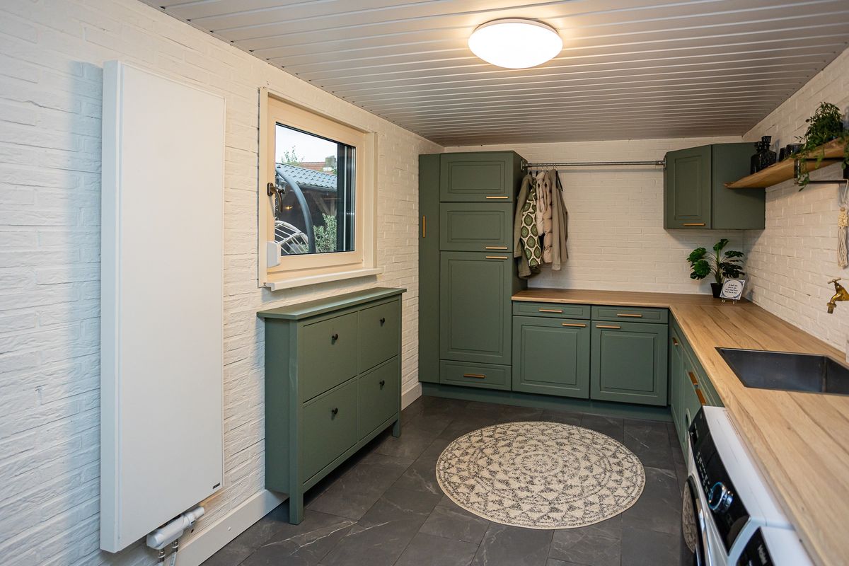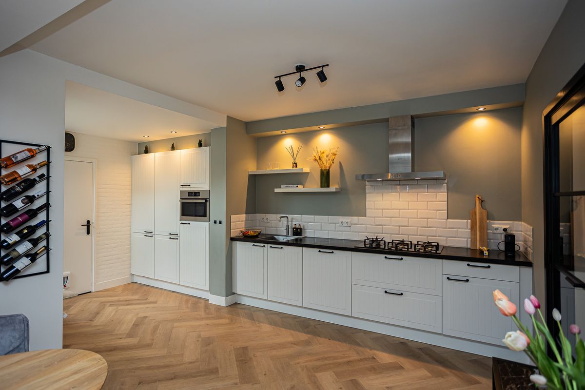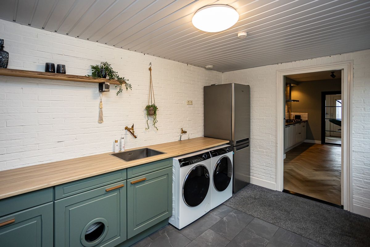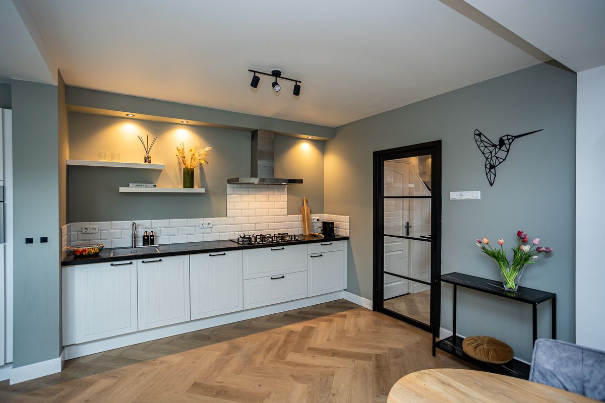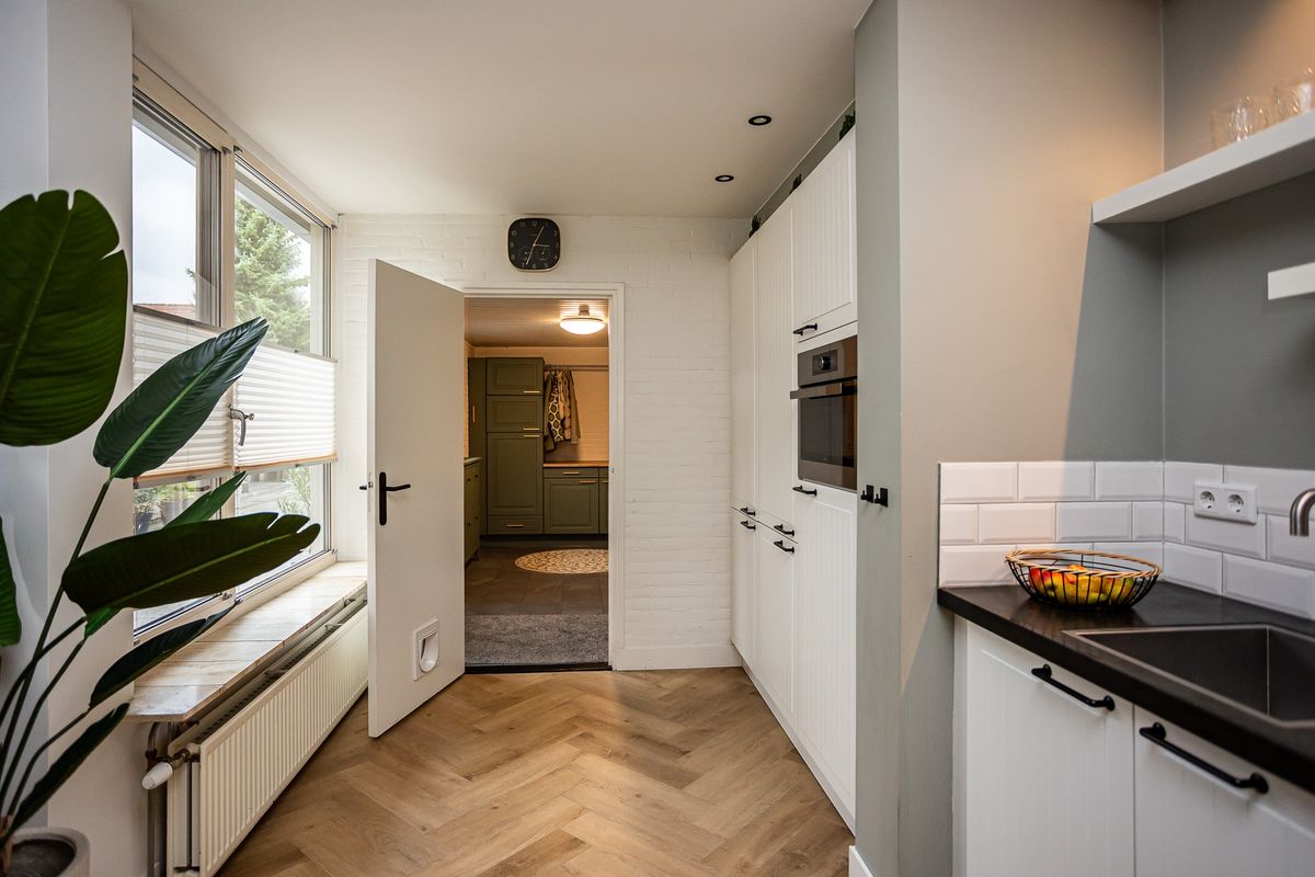 Begane grond: hal/entree, luxe toilet met fontein, halfopen keuken met luxe dubbele keukenopstelling met diverse inbouwapparatuur, eet-/woonkamer met airco-unit, bijkeuken/berging met wasmachineaansluiting en toegang tot terras en tuin.